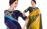 A máme je tu zase - sárí s hotovými čoli - a ne s ledajakými - jsou nádherně vyšívané motivem s pávem. A sárí jsou pohádková! Stínovaná!