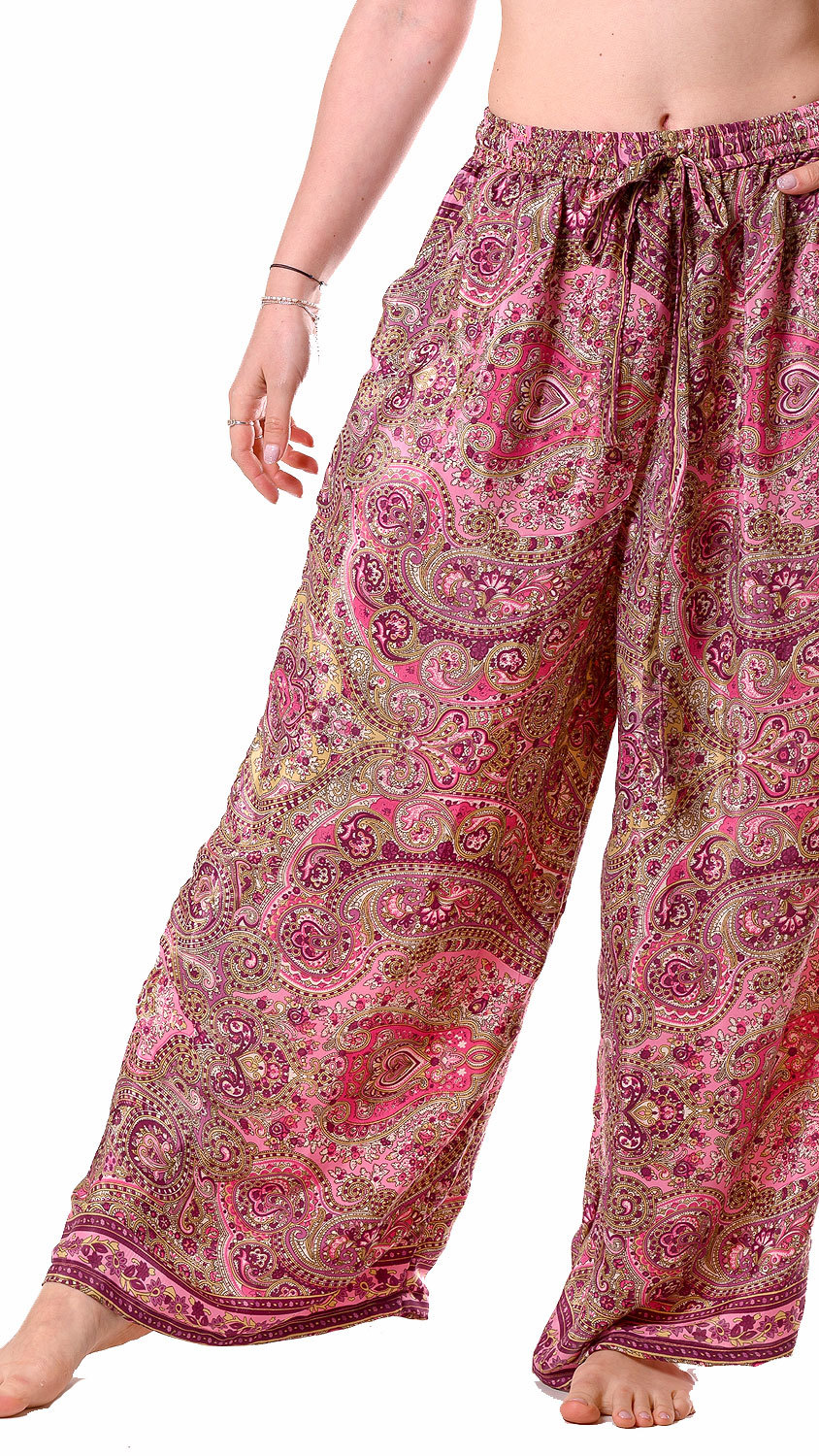 Hedvábně jemné palazzo kalhoty růžové kal1750