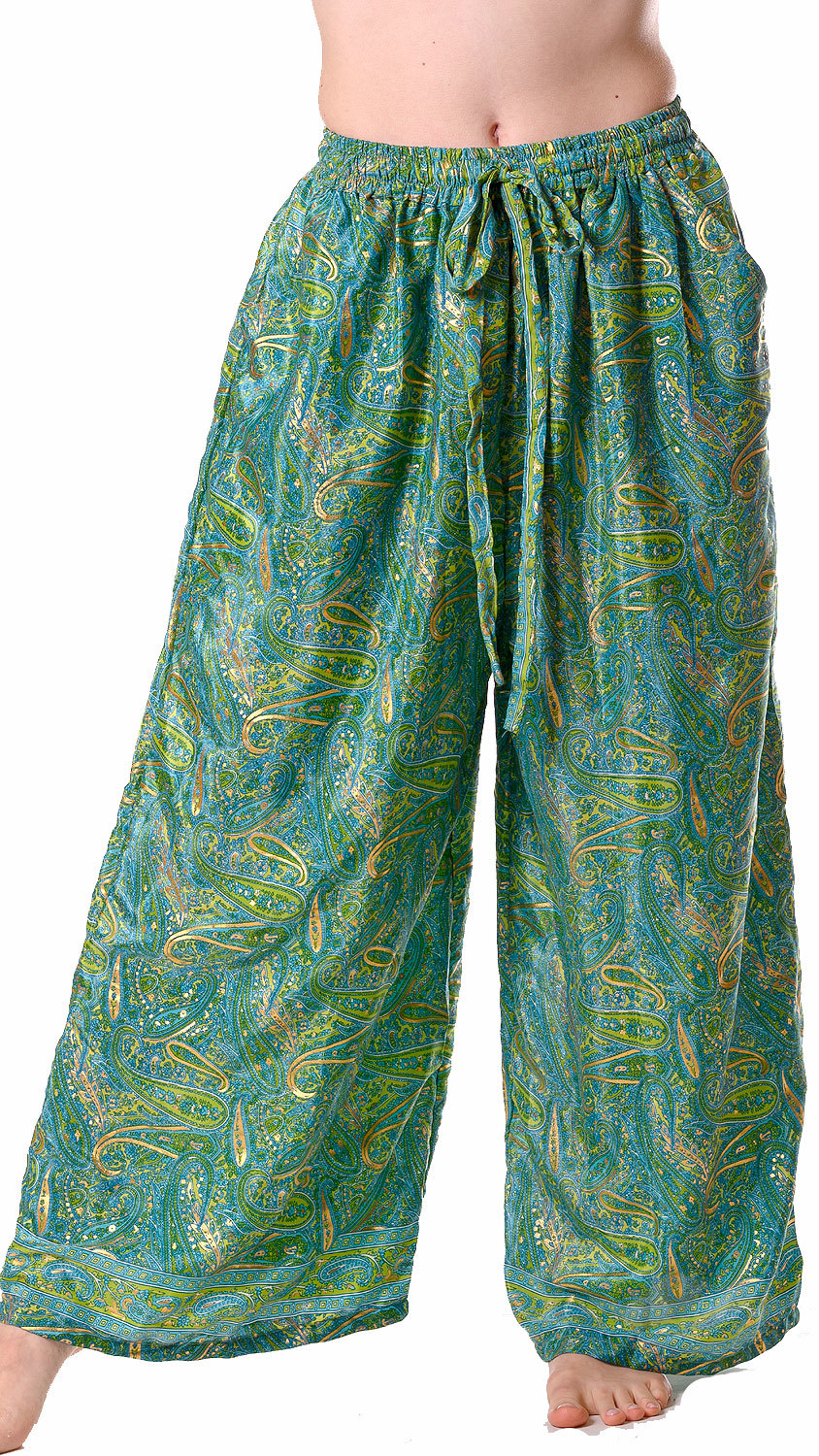 Jako úplnou novinku představujeme tyto nádherné originální kalhoty s kapsami, vyrobené z neskutečně příjemné, hedvábně jemné látky. Jejich snížený pas a volná guma v pase zajišťují pohodlné nošení. Jejich kašmírový vzorek rozzářil zlatý tisk.