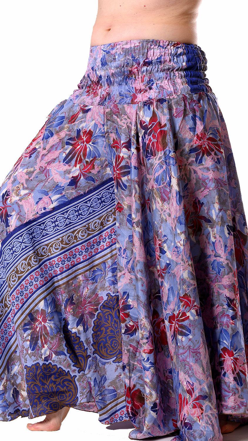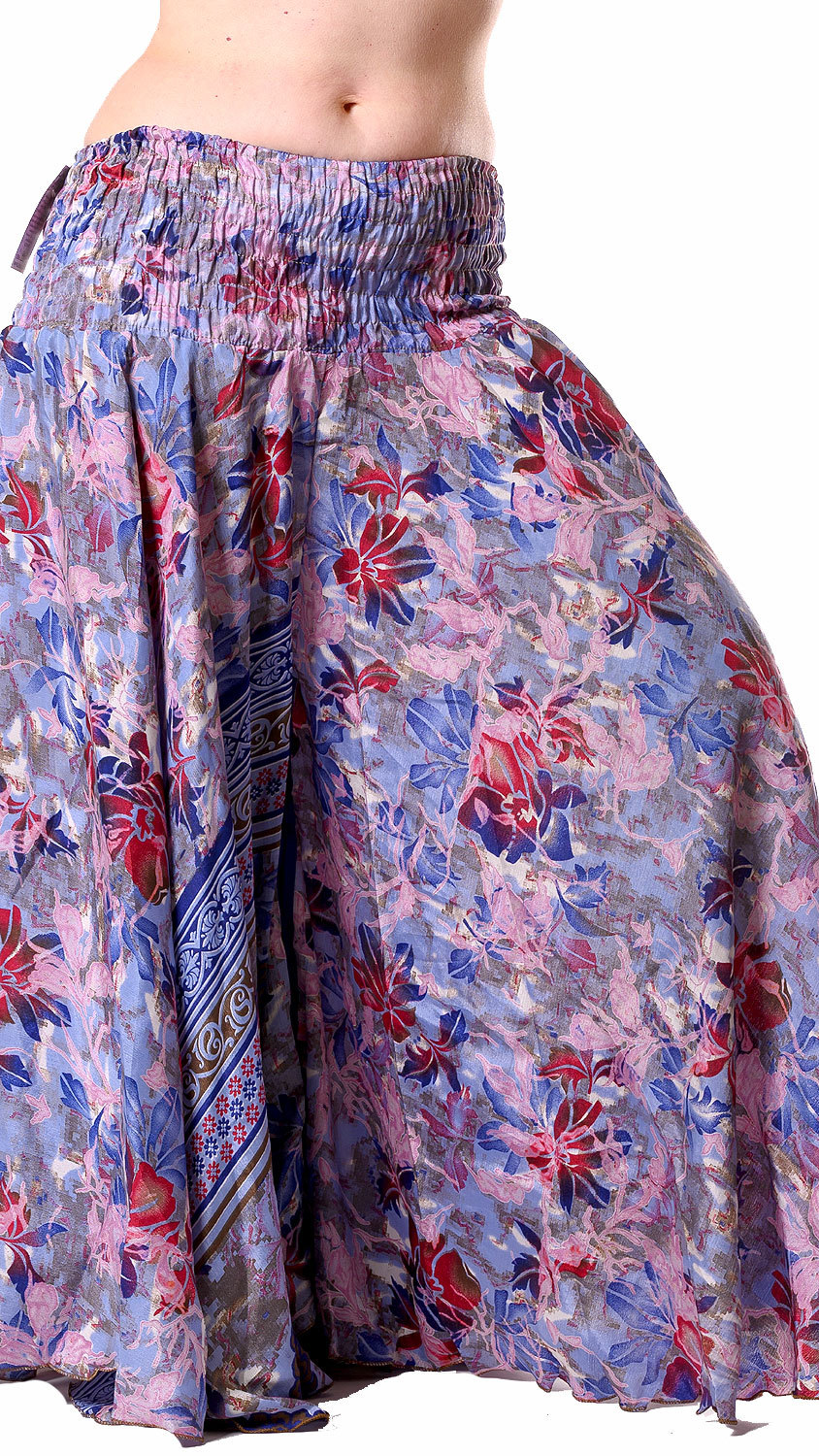 Kalhotová sukně z recyklovaných sárí květovaná kal1768