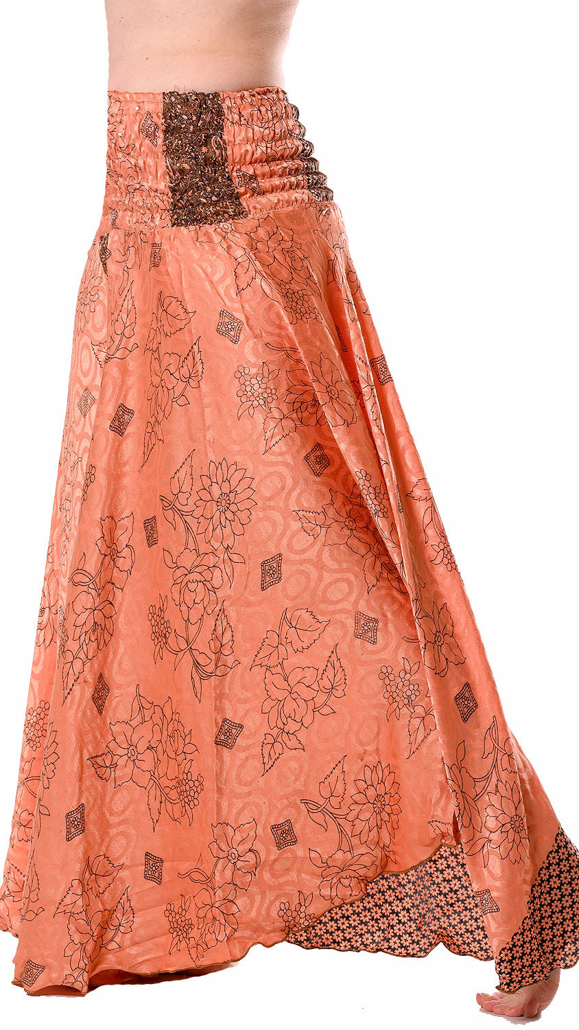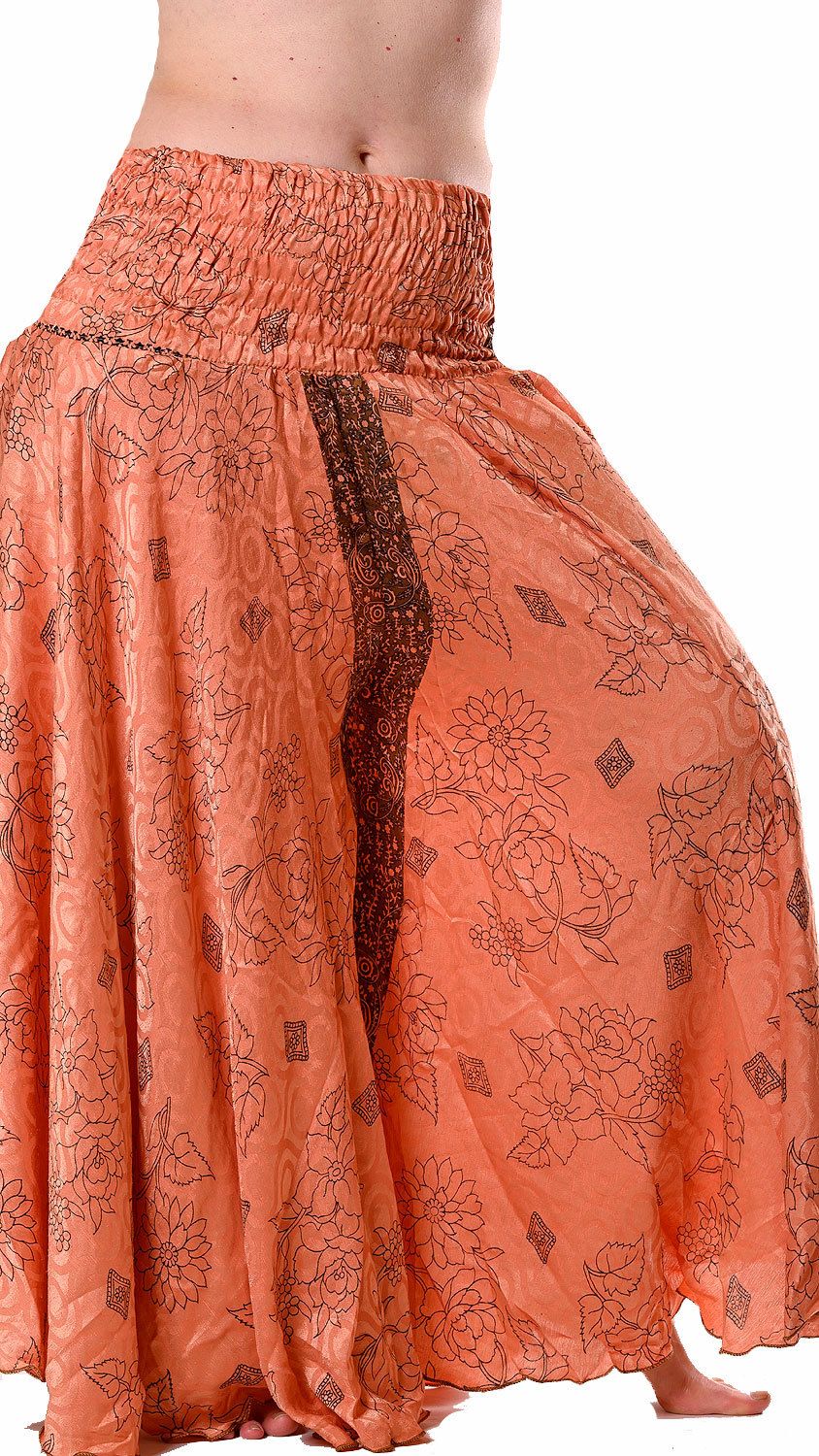 Kalhotová sukně z recyklovaných sárí meruňková kal1772