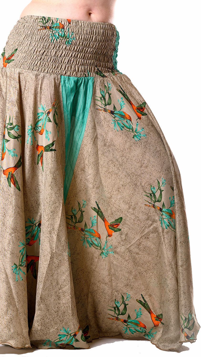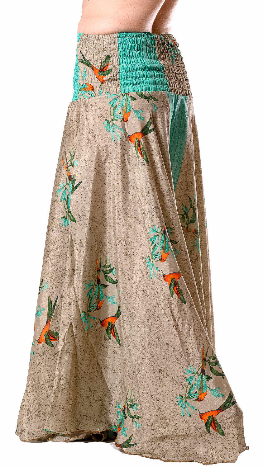 Kalhotová sukně z recyklovaných sárí s kolibříky kal1758