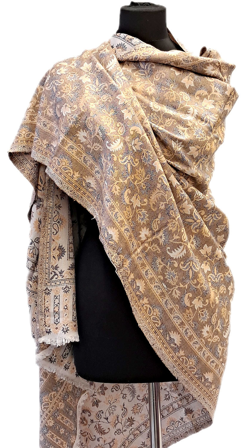 "Kašmírová" maxišála z Himalájí béžovo-bílá sl3691