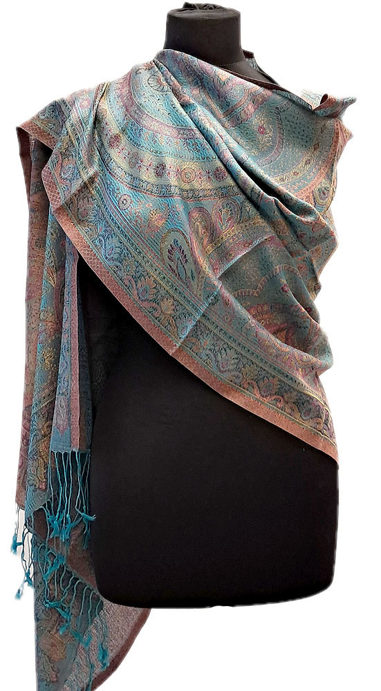 Luxusní originální šála z Indie tyrkysová sl3700
