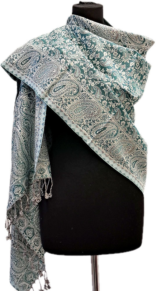 Oboustranná hřejivá "kašmírová" šála bílo-mátová sl3728