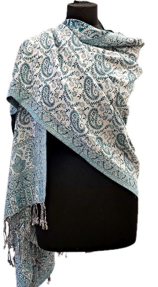Oboustranná hřejivá "kašmírová" šála bílo-tyrkysová sl3724