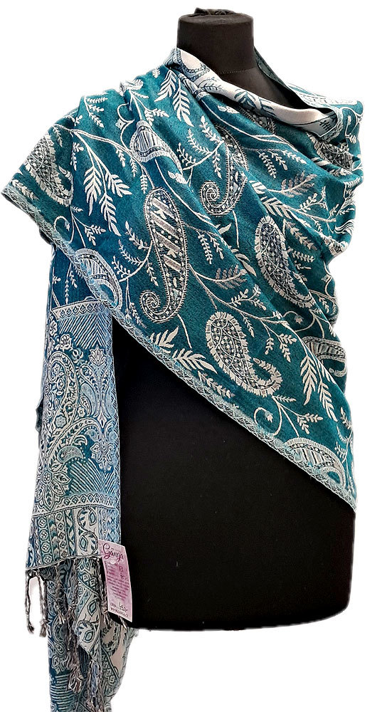 Oboustranná hřejivá "kašmírová" šála bílo-tyrkysová sl3727