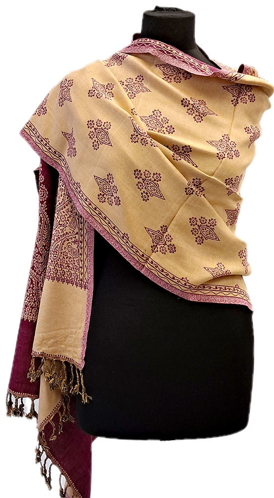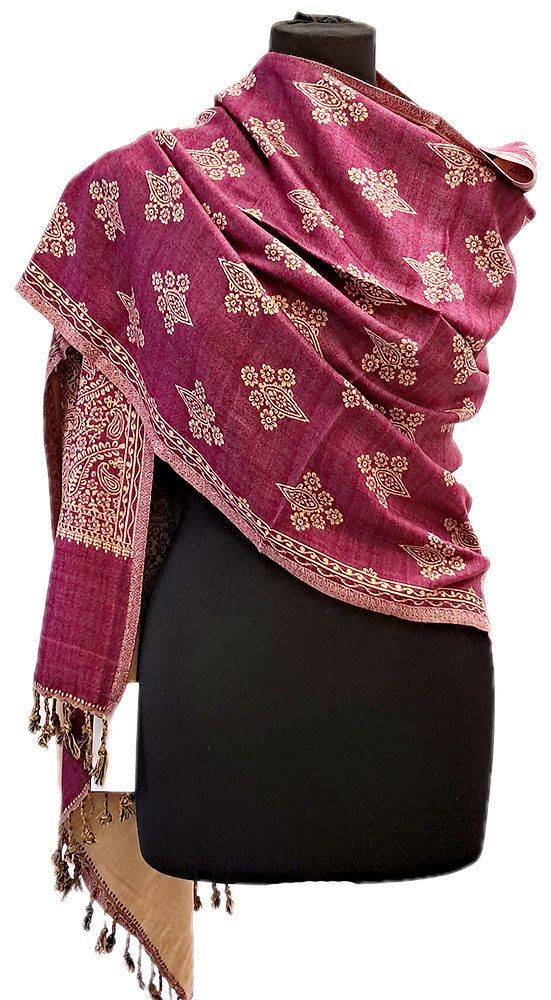 Vysoce kvalitní klasická šála z Himalájí je ozdobená krásným nadčasovým tradičním vzorem. Dokonale doplní podzimní, zimní i jarní oblečení - kabát i bundu. Lze též použít jako pléd přes večerní šaty. Velmi příjemně se nosí a krásně hřeje. Je oboustranná - ke každému outfitu může vypadat jinak.
