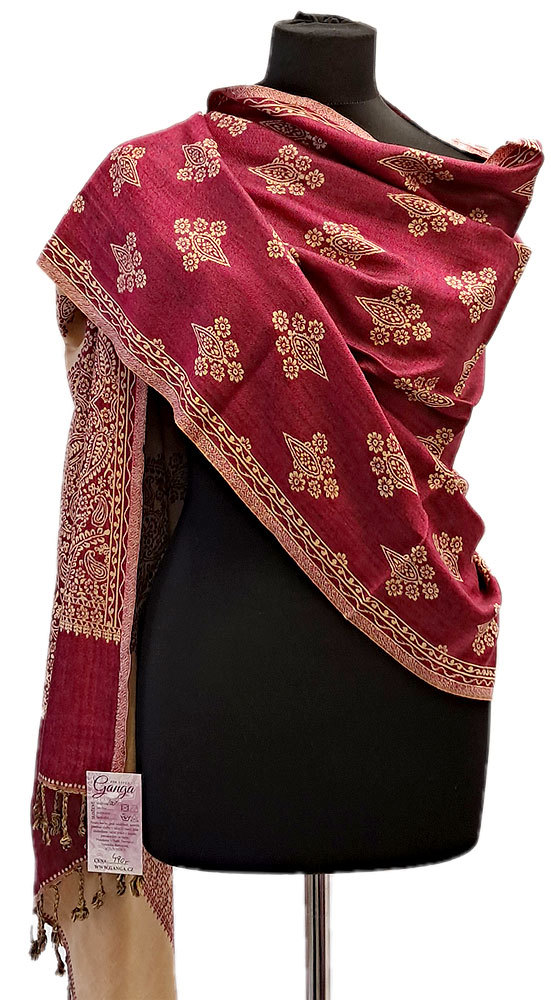 Vysoce kvalitní klasická šála z Himalájí je ozdobená krásným nadčasovým tradičním vzorem. Dokonale doplní podzimní, zimní i jarní oblečení - kabát i bundu. Lze též použít jako pléd přes večerní šaty. Velmi příjemně se nosí a krásně hřeje. Je oboustranná - ke každému outfitu může vypadat jinak.