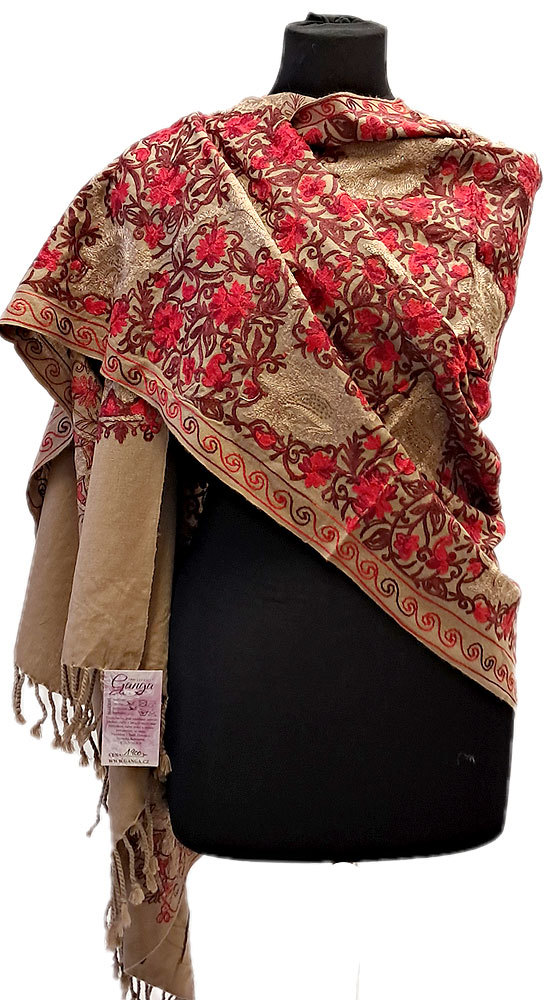 Vyšívaná vlněná šála z Himalájí béžová sl3684
