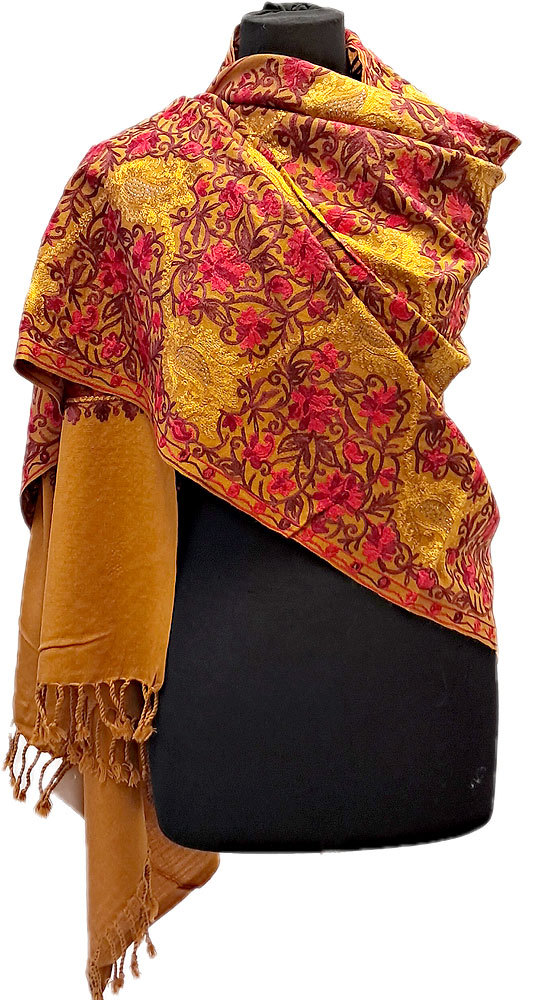 Vyšívaná vlněná šála z Himalájí karamelová sl3683