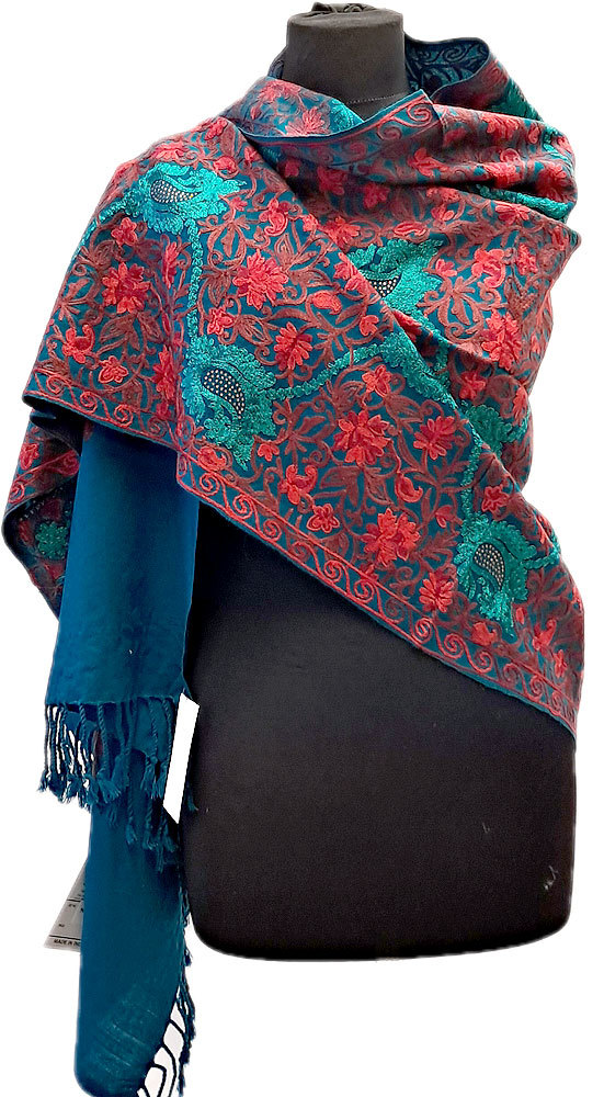 Vyšívaná vlněná šála z Himalájí petrolejová sl3682