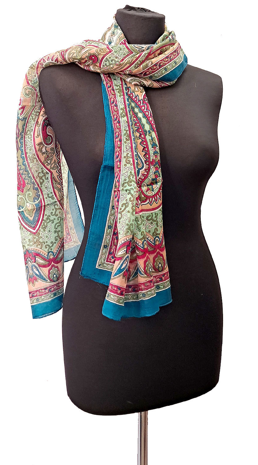 Dopřejte si dotek elegance a exotiky s touto luxusní šálkou z pravého hedvábí. Každý kus je zdoben tradičními indickými vzory v nádherných, harmonicky ladících barvách, které dodají vašemu outfitu jedinečný půvab a styl. Nabízíme ji za super cenu!