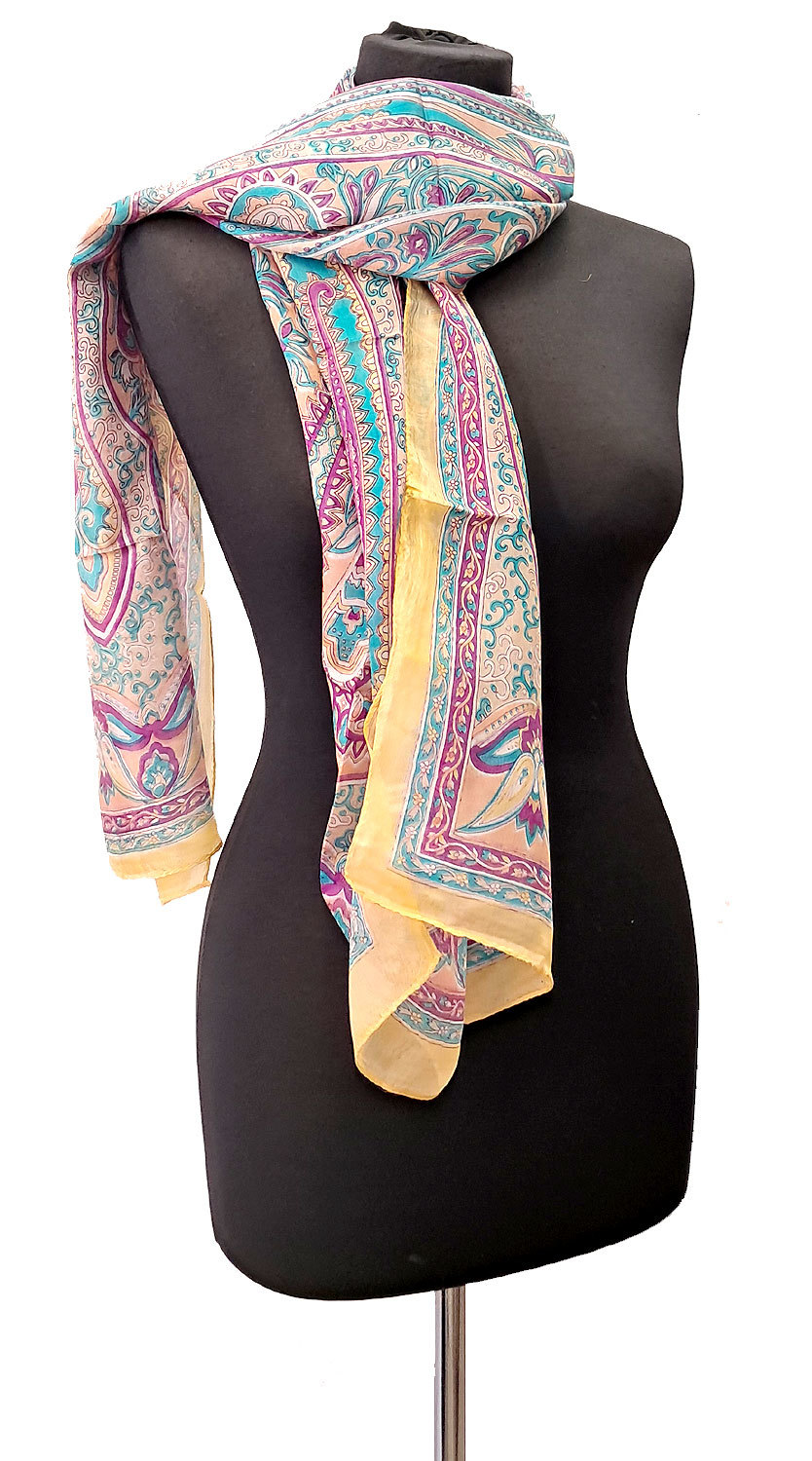 Dopřejte si dotek elegance a exotiky s touto luxusní šálkou z pravého hedvábí. Každý kus je zdoben tradičními indickými vzory v nádherných, harmonicky ladících barvách, které dodají vašemu outfitu jedinečný půvab a styl. Nabízíme ji za super cenu!