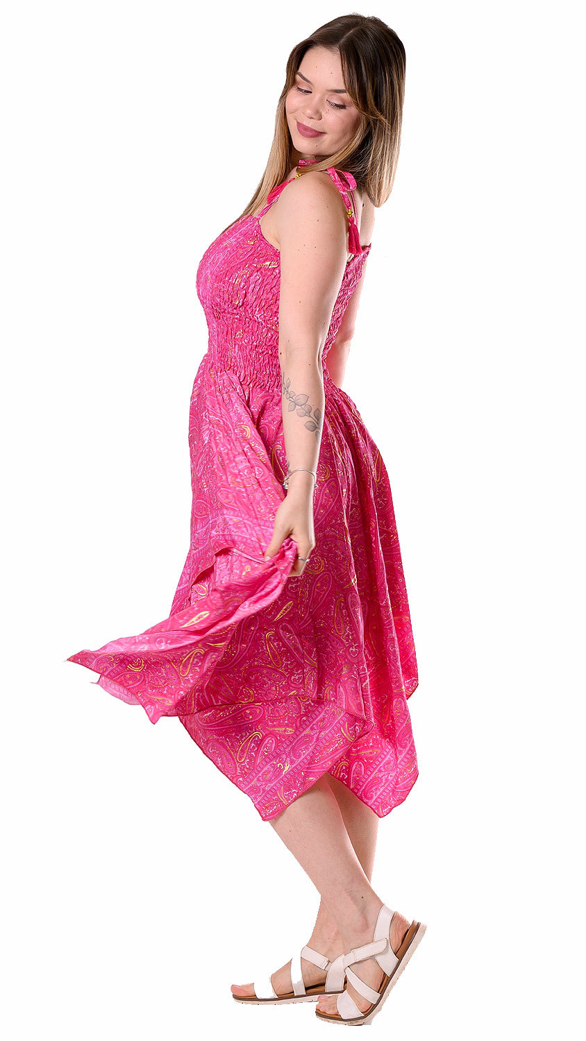 Hedvábně jemné šaty - sukně z Indie růžové sty1092
