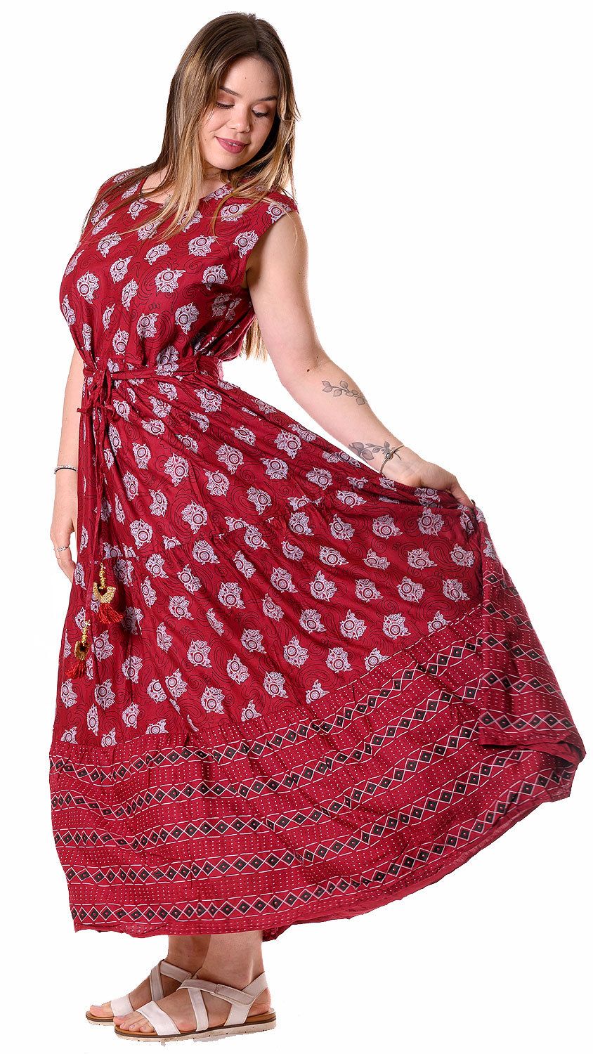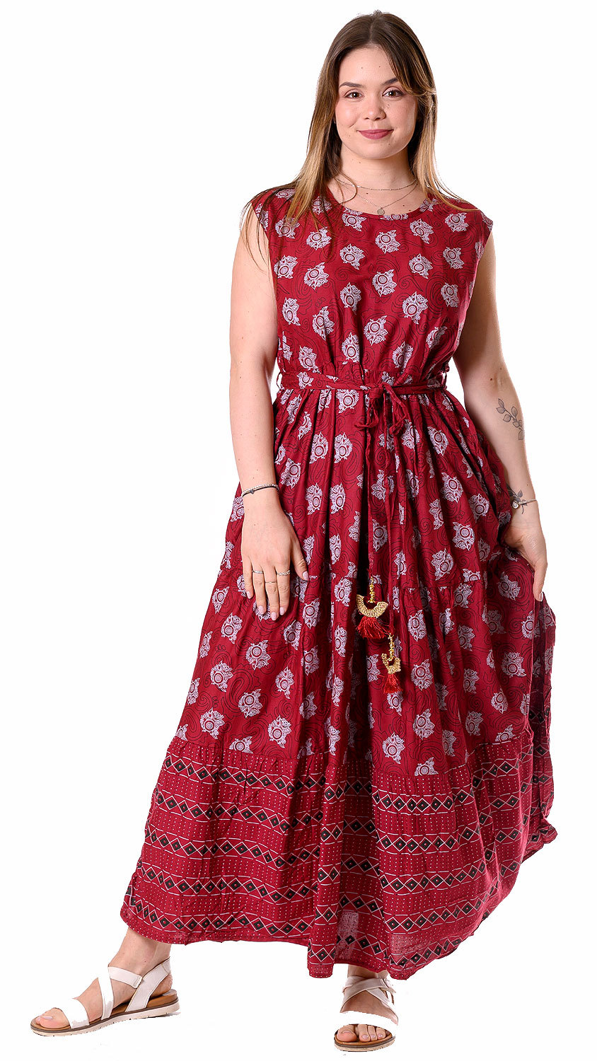 Nádherné šaty z Indie jsou vyrobeny z kvalitního a příjemného materiálu. Mají pohodlný střih, který navíc lichotí postavě. Chválíme indického krejčího za to, že na látce nešetřil, a tak jsou šaty krásně široké – vytvářejí áčkový princeznovský střih. Jejich největší předností jsou jejich nádherné indické barvy a vzory, které vycházejí ze severoindických tradičních ornamentů, a také jejich pásek zakončený výraznou ozdobou. Šaty jsou bez rukávů, uvnitř jsou ale rukávky přistehovány – můžete si je přišít.