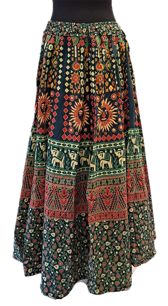 Bavlněná dlouhá indická sukně s razítky zelená suk5936