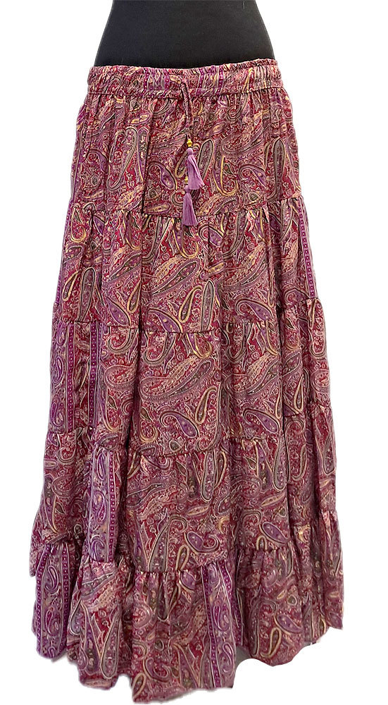 Hedvábně jemná dlouhá letní sukně z Indie fuchsiová se zlatem suk5949