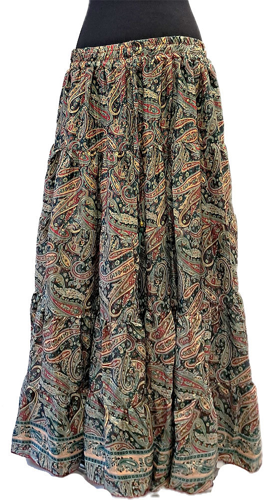 Hedvábně jemná dlouhá letní sukně z Indie lahvová se zlatem suk5948