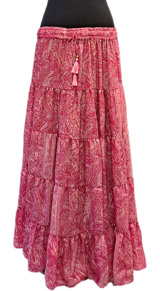 Hedvábně jemná dlouhá letní sukně z Indie růžová se zlatem suk5950