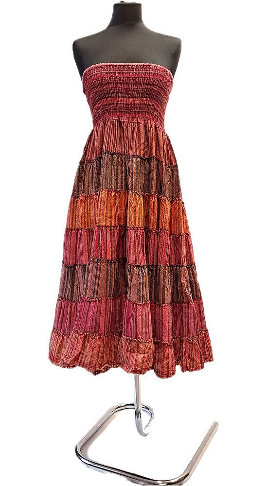Tato širokánská bohatá sukně nás láká svým kvalitním, příjemným a dokonce i hřejovým materiálem a v neposlední řadě také dokonale sladěnými barvami. Dá se nosit i jako šaty, pokud si žabičkovou část posunete až na hrudník.
