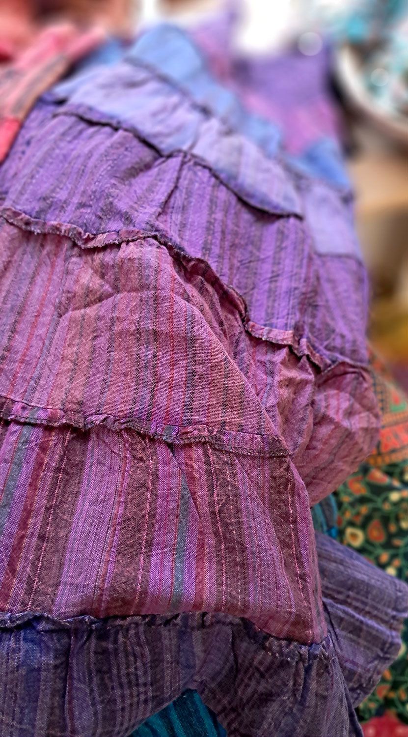 Tato širokánská bohatá sukně nás láká svým kvalitním, příjemným a dokonce i hřejovým materiálem a v neposlední řadě také dokonale sladěnými barvami. Dá se nosit i jako šaty, pokud si žabičkovou část posunete až na hrudník.