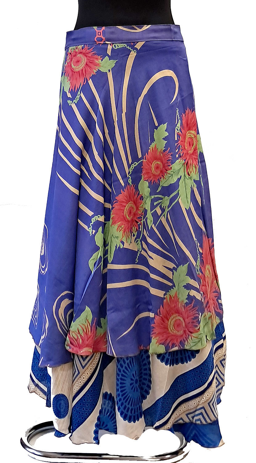 Zavinovací sukně na 100 způsobů z recyklovaných sárí modrá suk5914