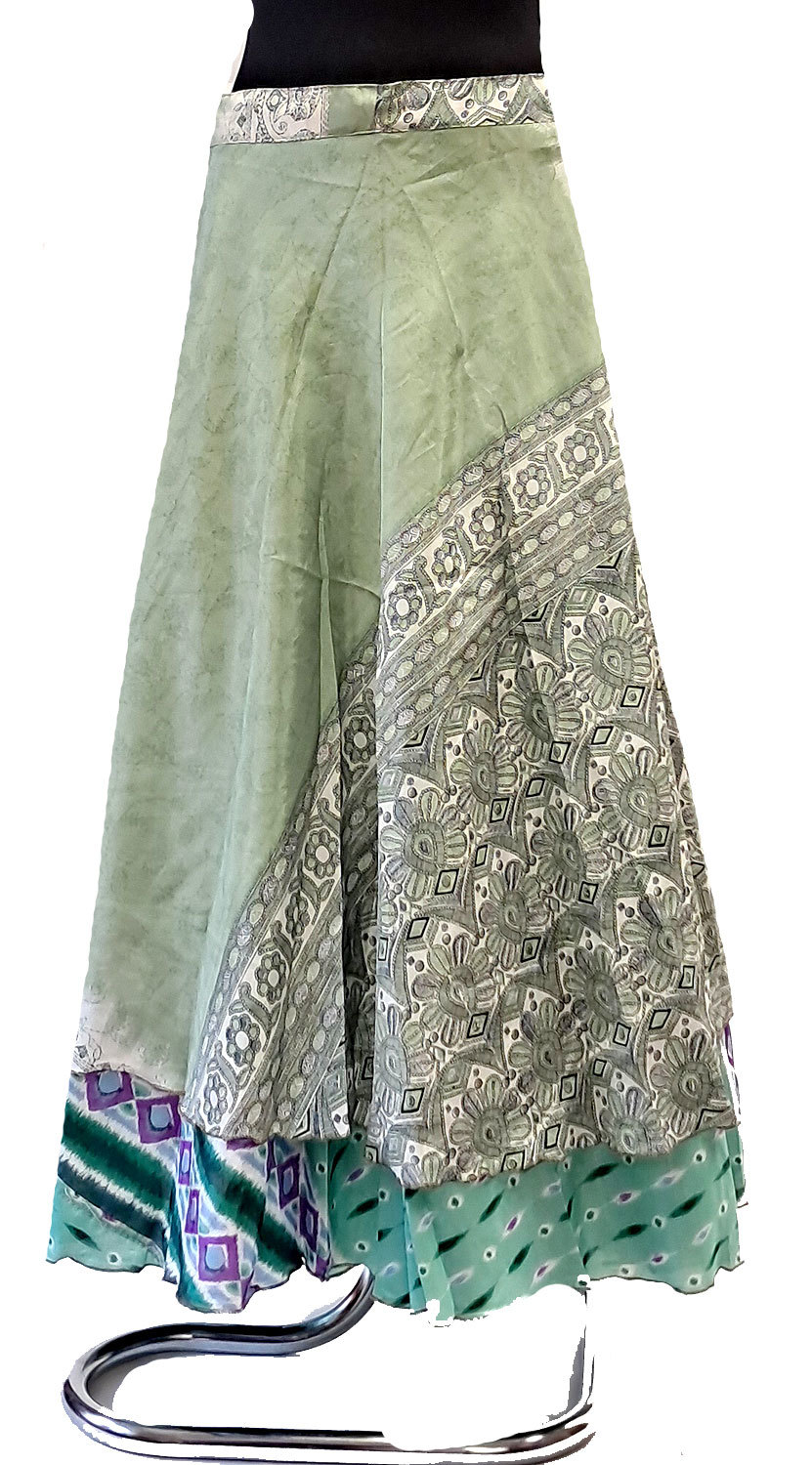 Zavinovací sukně na 100 způsobů z recyklovaných sárí pistáciová suk5919