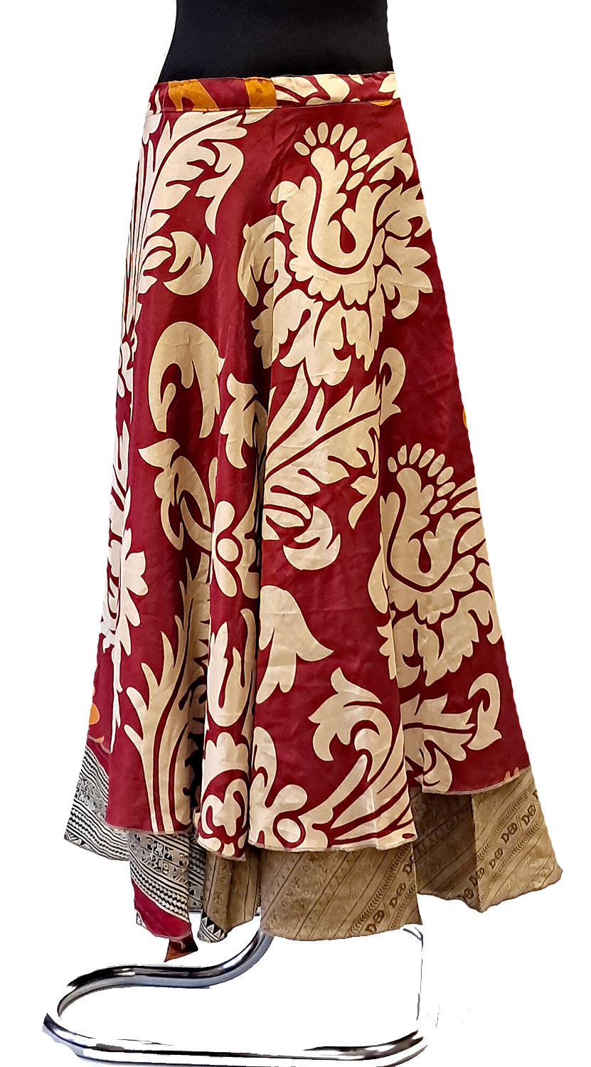 Zavinovací sukně na 100 způsobů z recyklovaných sárí vínová suk5923