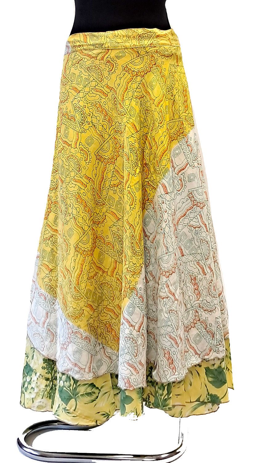 Zavinovací sukně na 100 způsobů z recyklovaných sárí žlutá suk5920