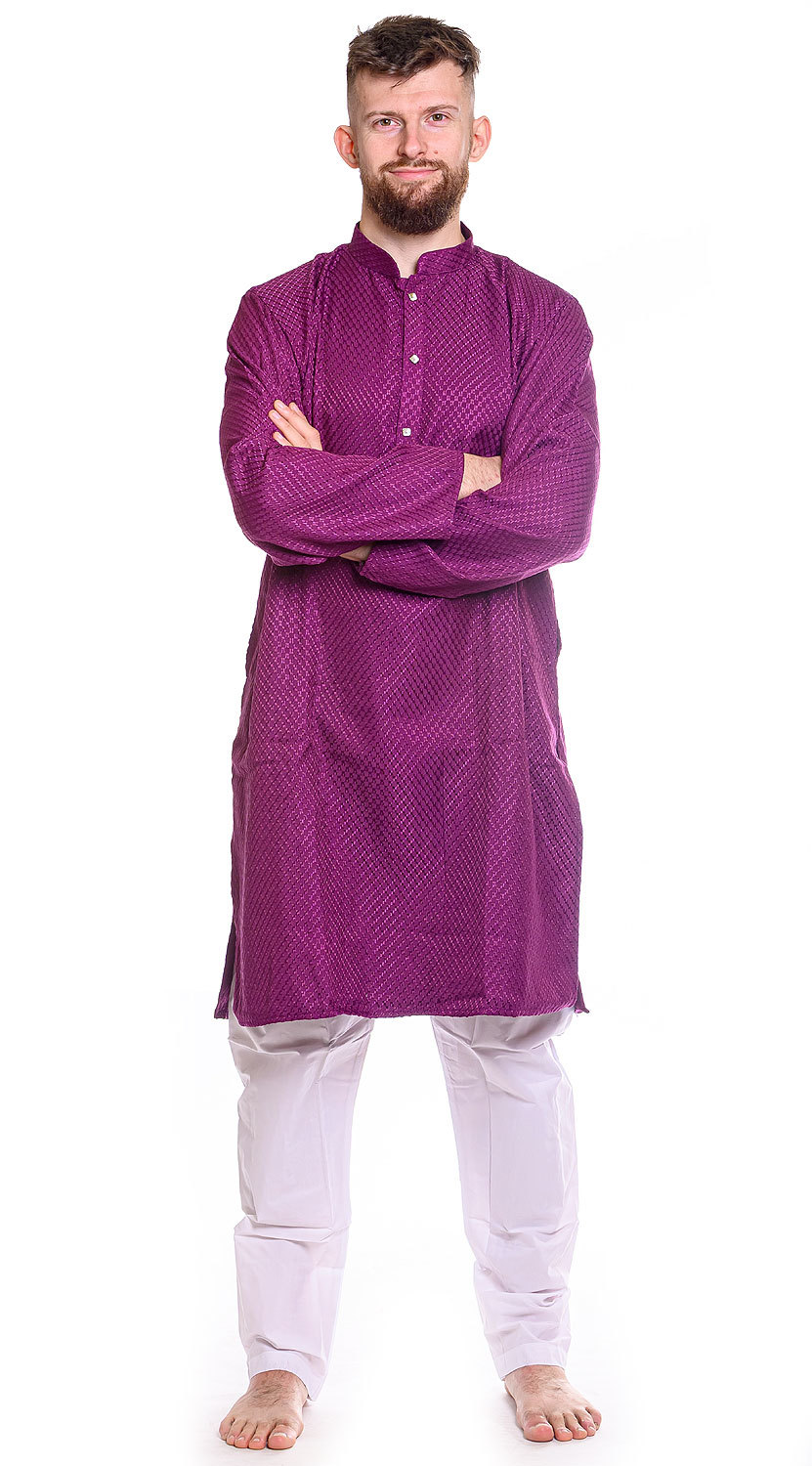 Slavnostní pánské kurta pajama na indickou svatbu fuchsiové L-XL sh138
