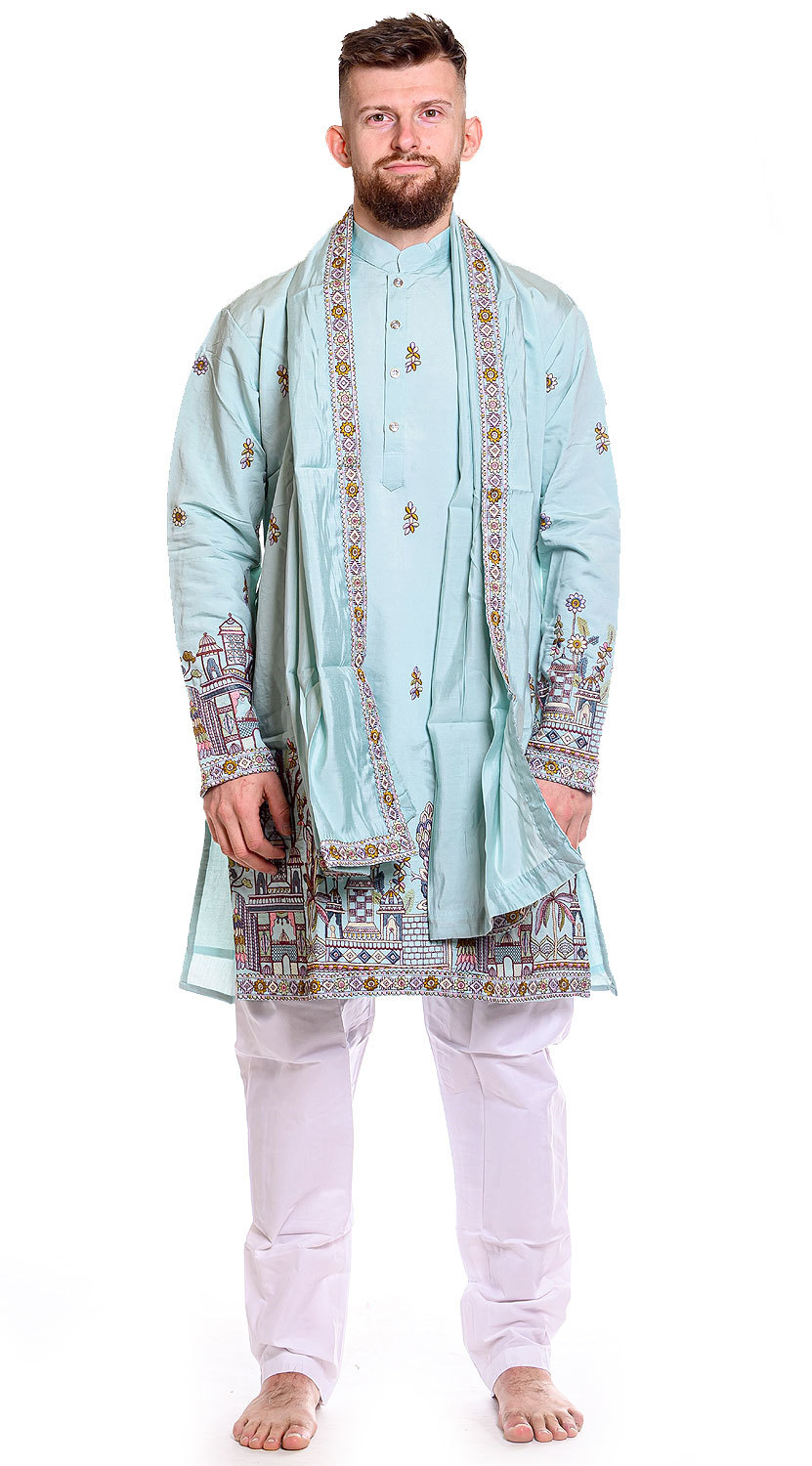 Vhodné na slavnosti, indické svatby, obřady či oslavy. Doporučujeme kombinovat s bílými nebo černými kalhotami či džínami a společenskými nebo orientálními botami.
