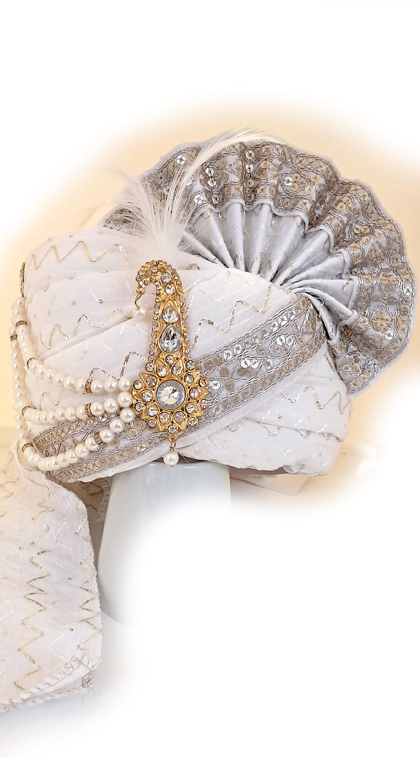 Luxusní indický turban Maharádža bílo-zlatý tu121