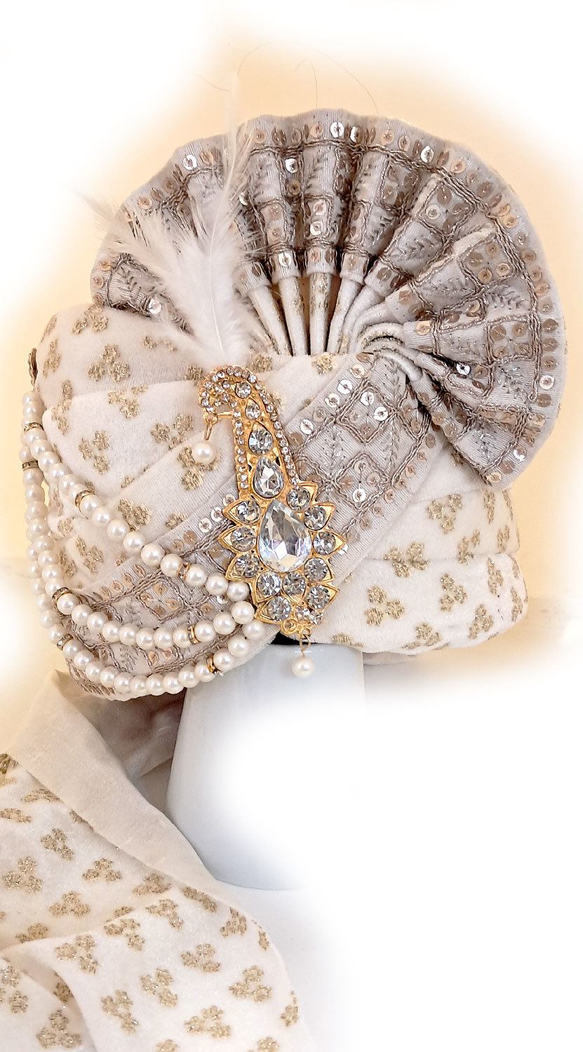 Luxusní indický turban Maharádža bílo-zlatý tu122