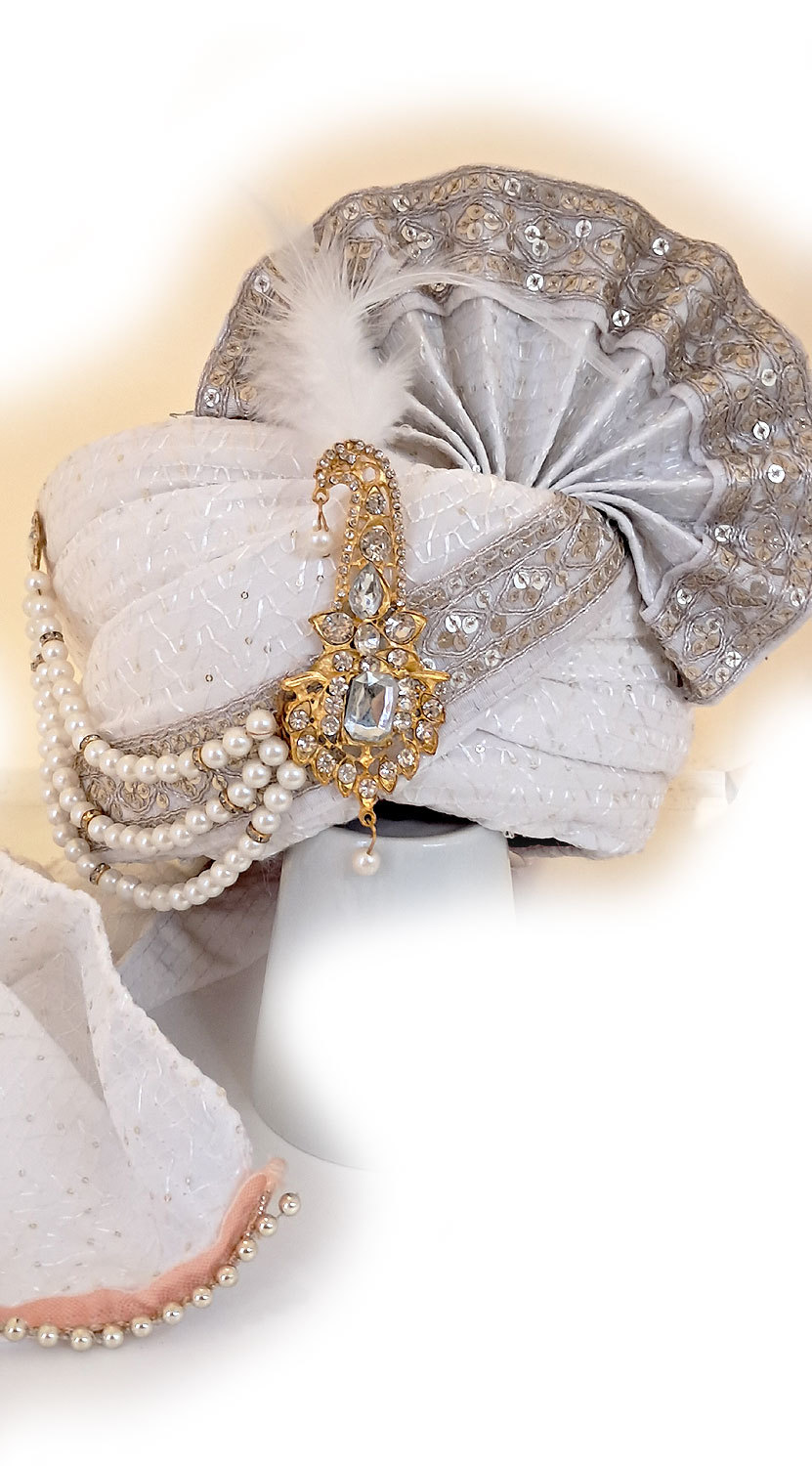 Luxusní indický turban Maharádža bílo-zlatý tu123