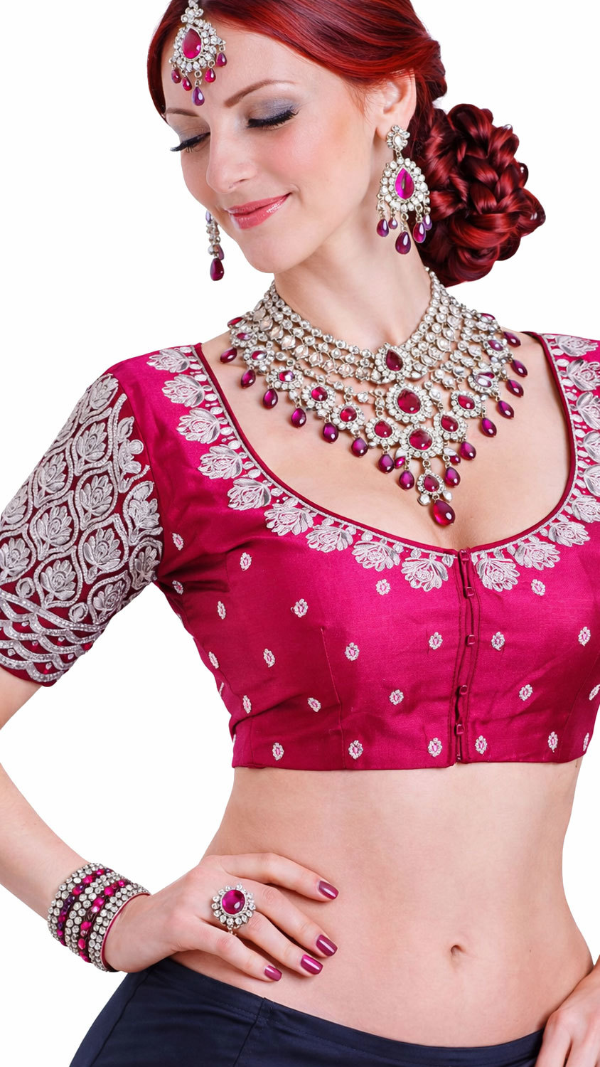 Dechberoucí bollywoodské čoli potěší dokonalým střihem - zepředu má lodičkový výstřih, vzadu zase hlubokou efektní "podkovu" včetně ozdobného provázku na zavázání. Zapíná se klasicky na háčky. Je krásně vyšíváno pravým stříbrným zari. Dokonale se hodí jak k jednoduchým, tak zdobeným sárí.