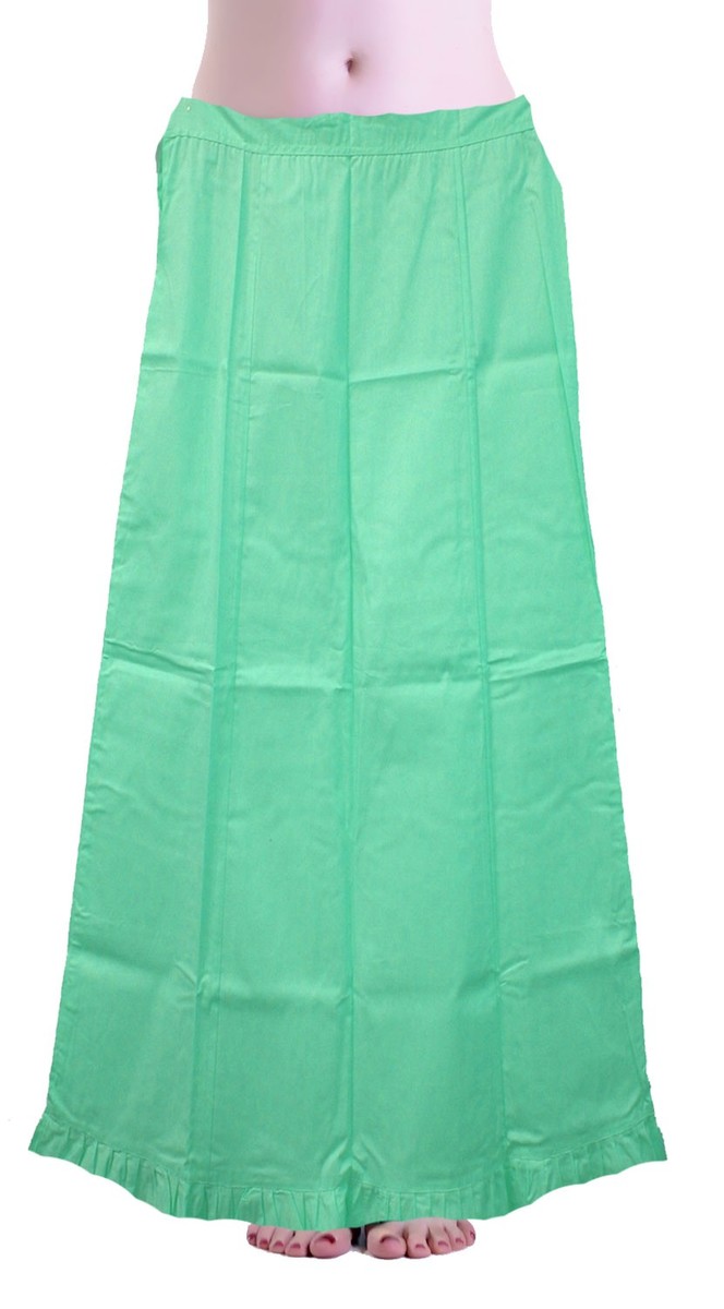 Spodnička by neměla ze sárí vykukovat, ale také by neměla být příliš krátká. Důležitý je obvod v pase - pokud máte více, než je maximální obvod, spodnička vám bohužel bude úzká. Naopak, pokud máte méně, vůbec to nevadí - spodničku lze stáhnout provázkem.