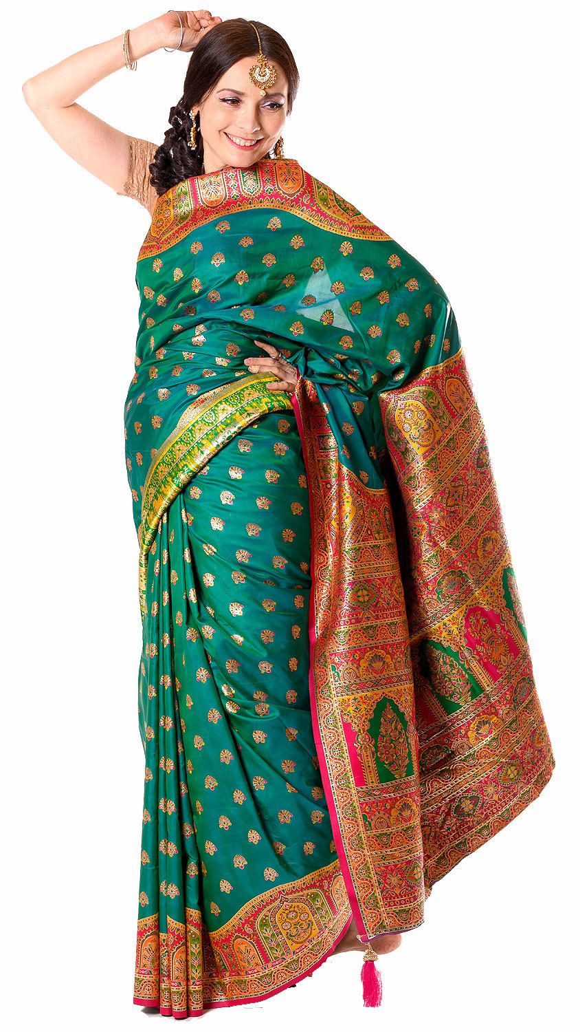 Bohatě zdobené luxusní sárí z Indie zelené v8596