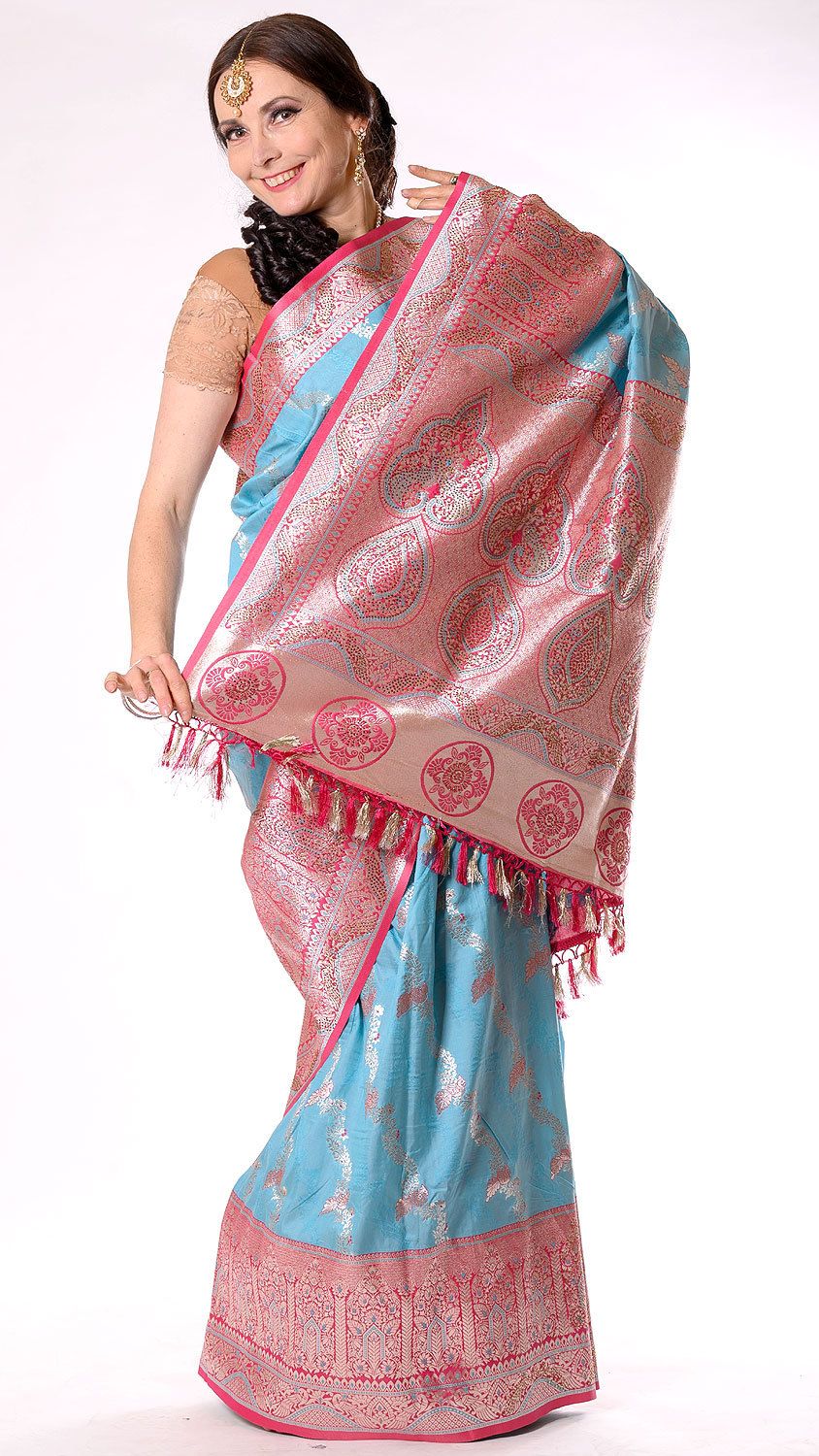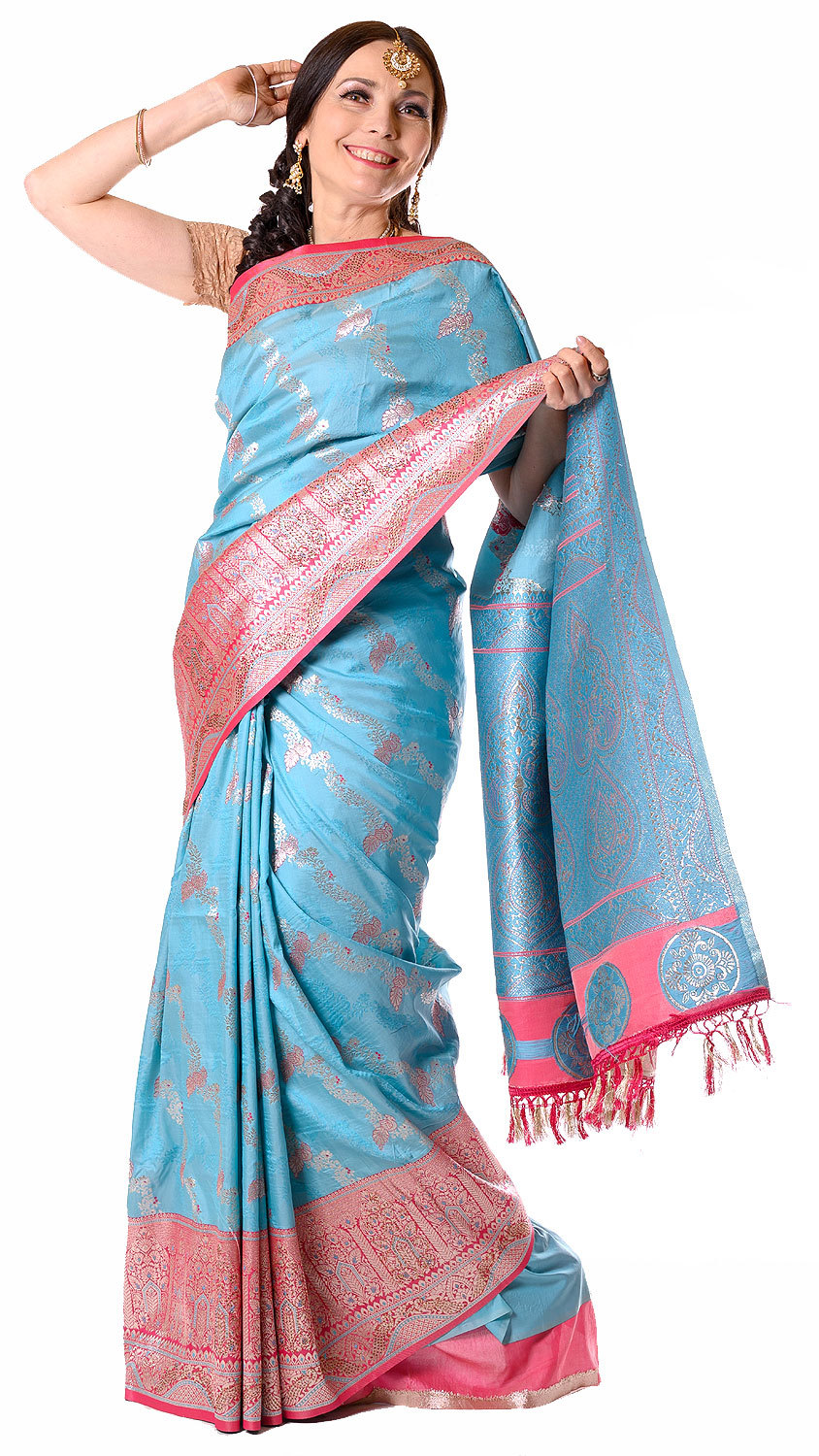Božské modrorůžové sárí v8601