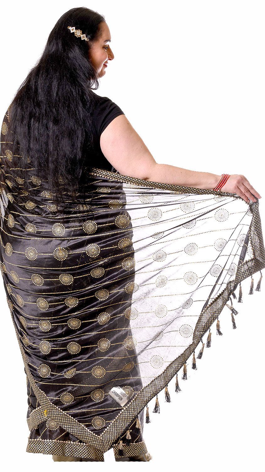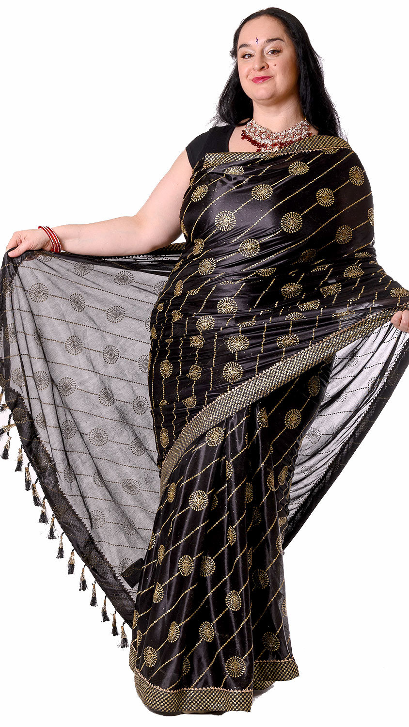 Černé sárí se sypacími třpytkami za super cenu v8553