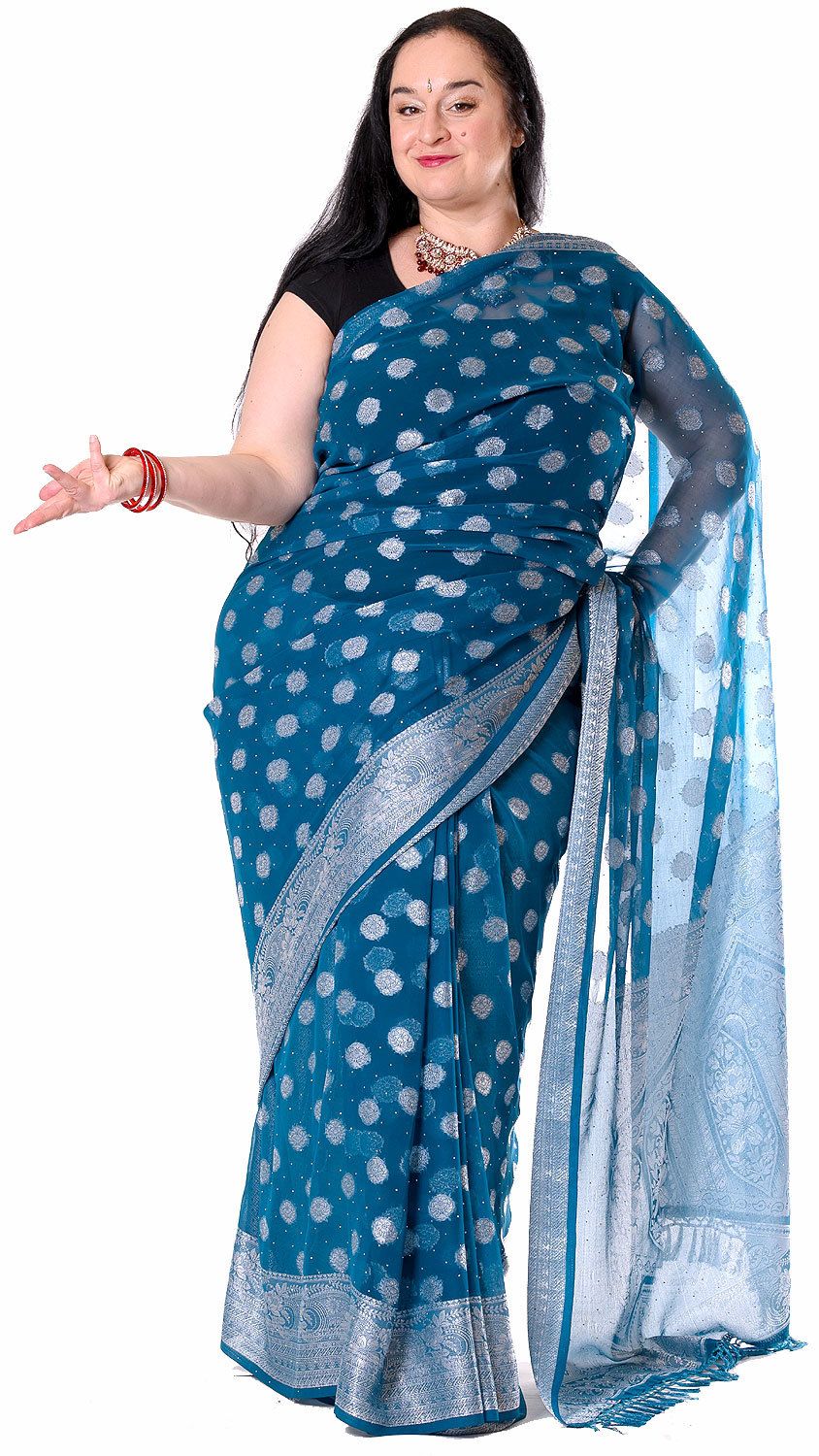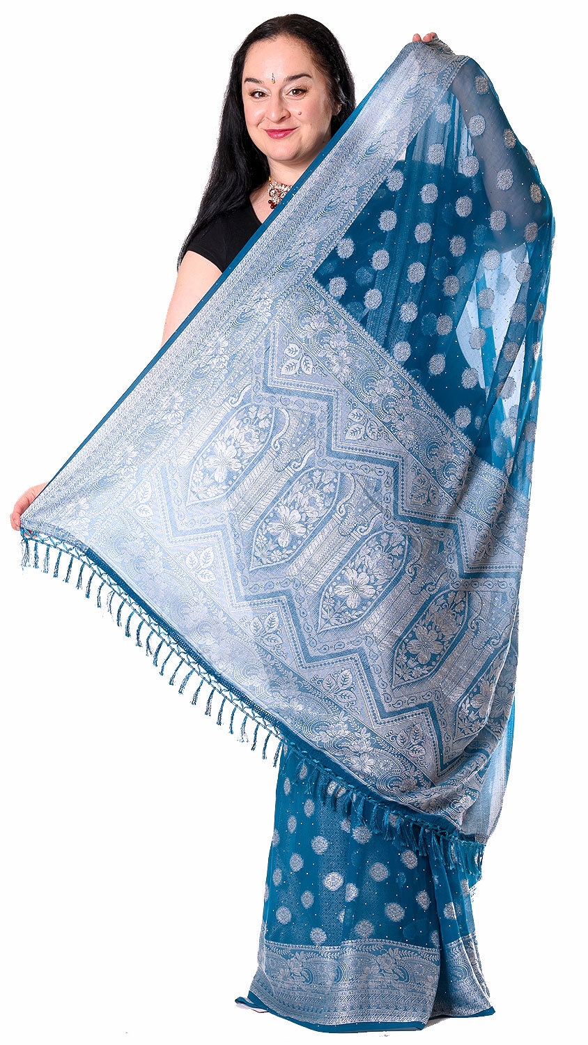 Lehké slavnostní sárí z Indie petrolejové v8602