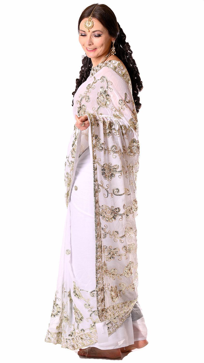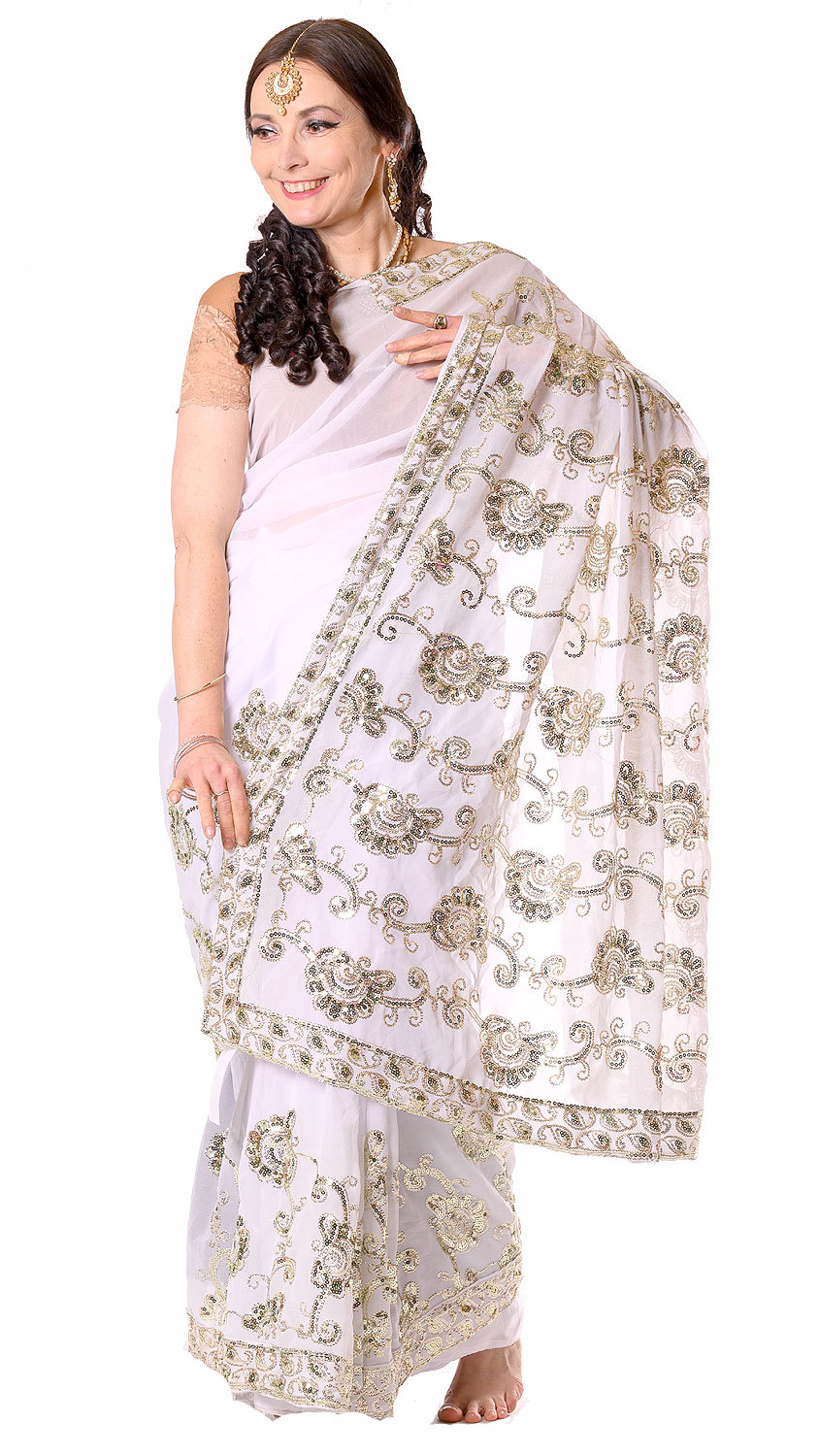 Luxusní třpytivé sárí svatební v8586