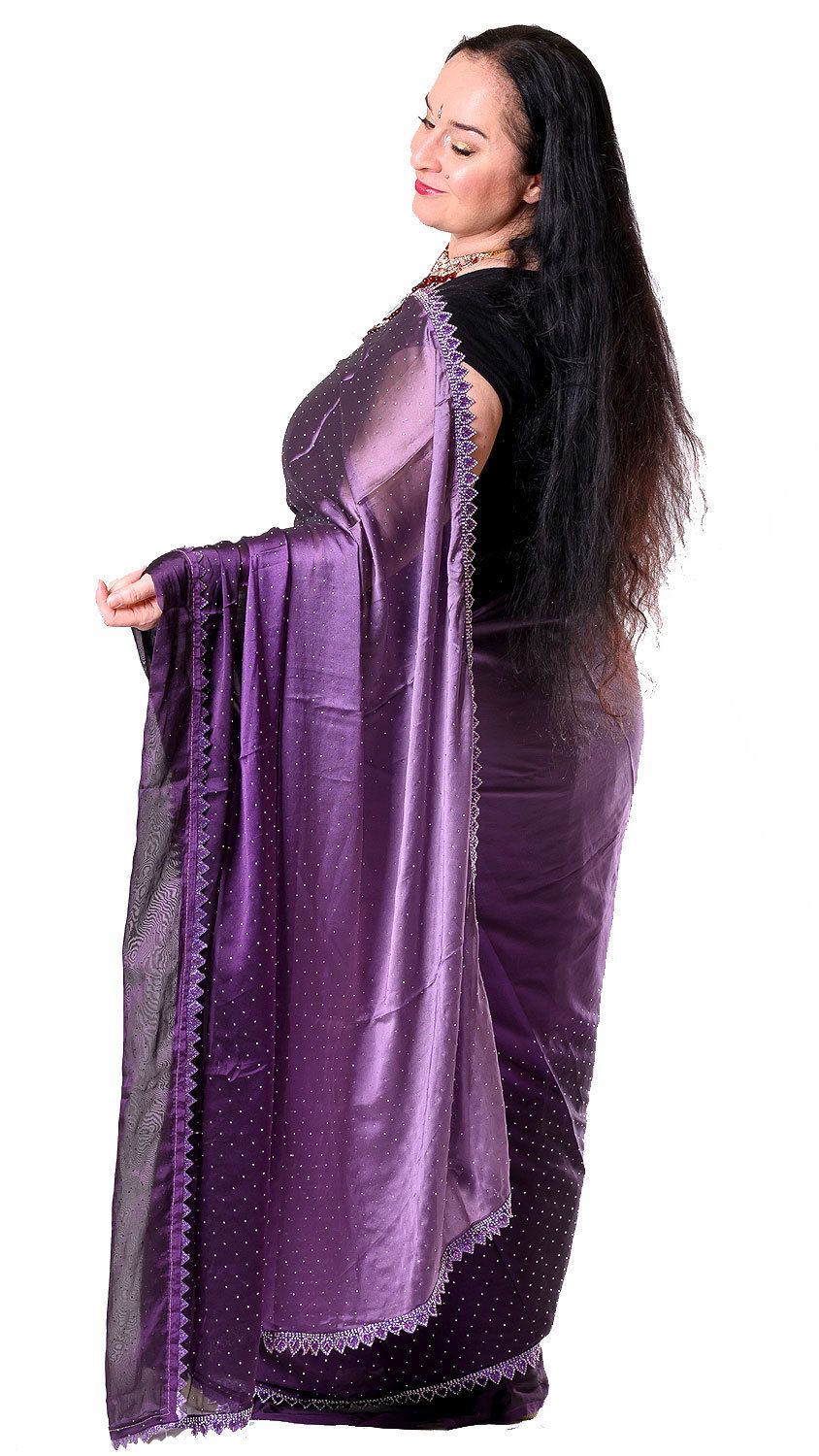 Luxusní třpytivé stínované sárí fialové v8587