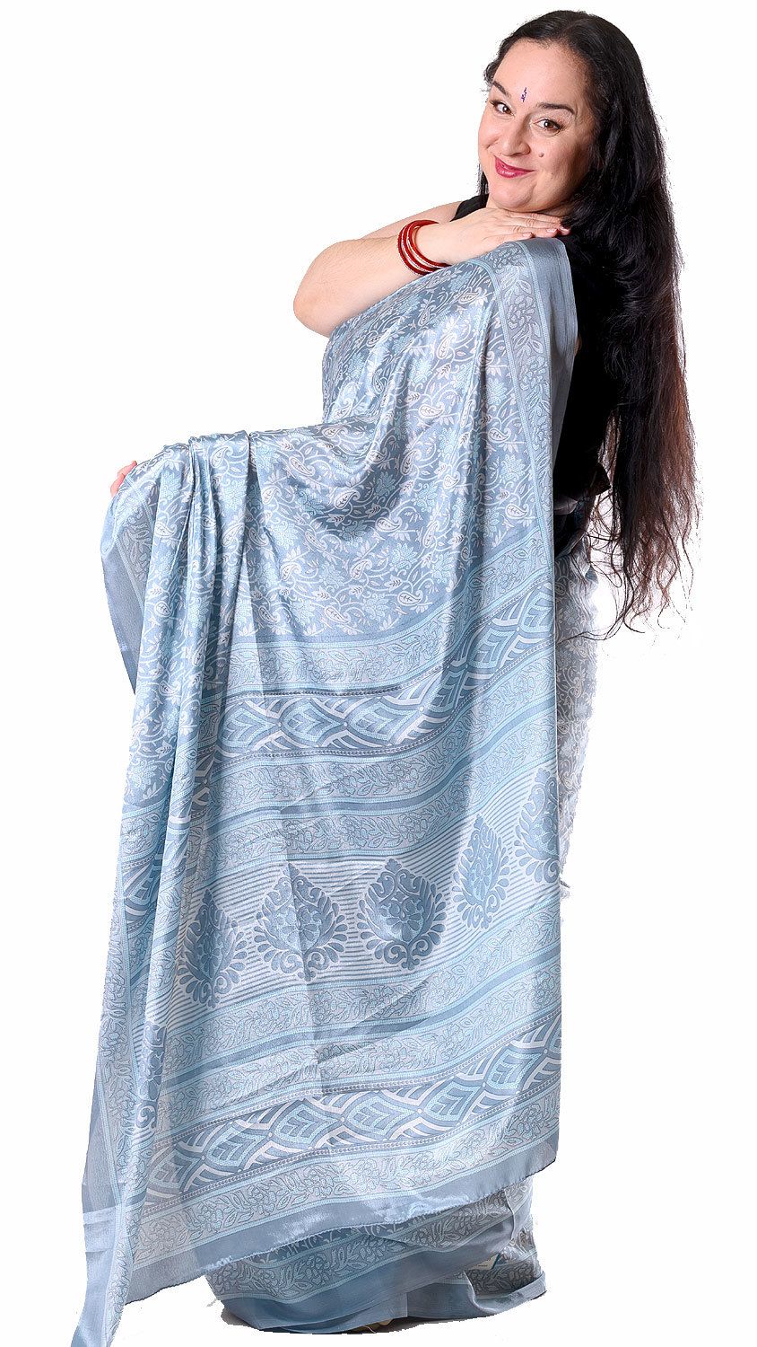 Saténové sárí s kašmírovým vzorkem ledové v8607
