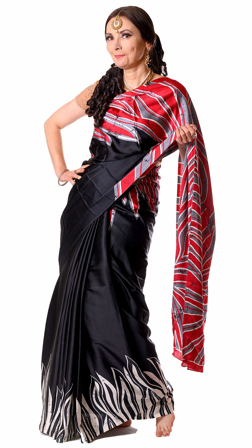 Tokyo satin sárí černočervené v8625