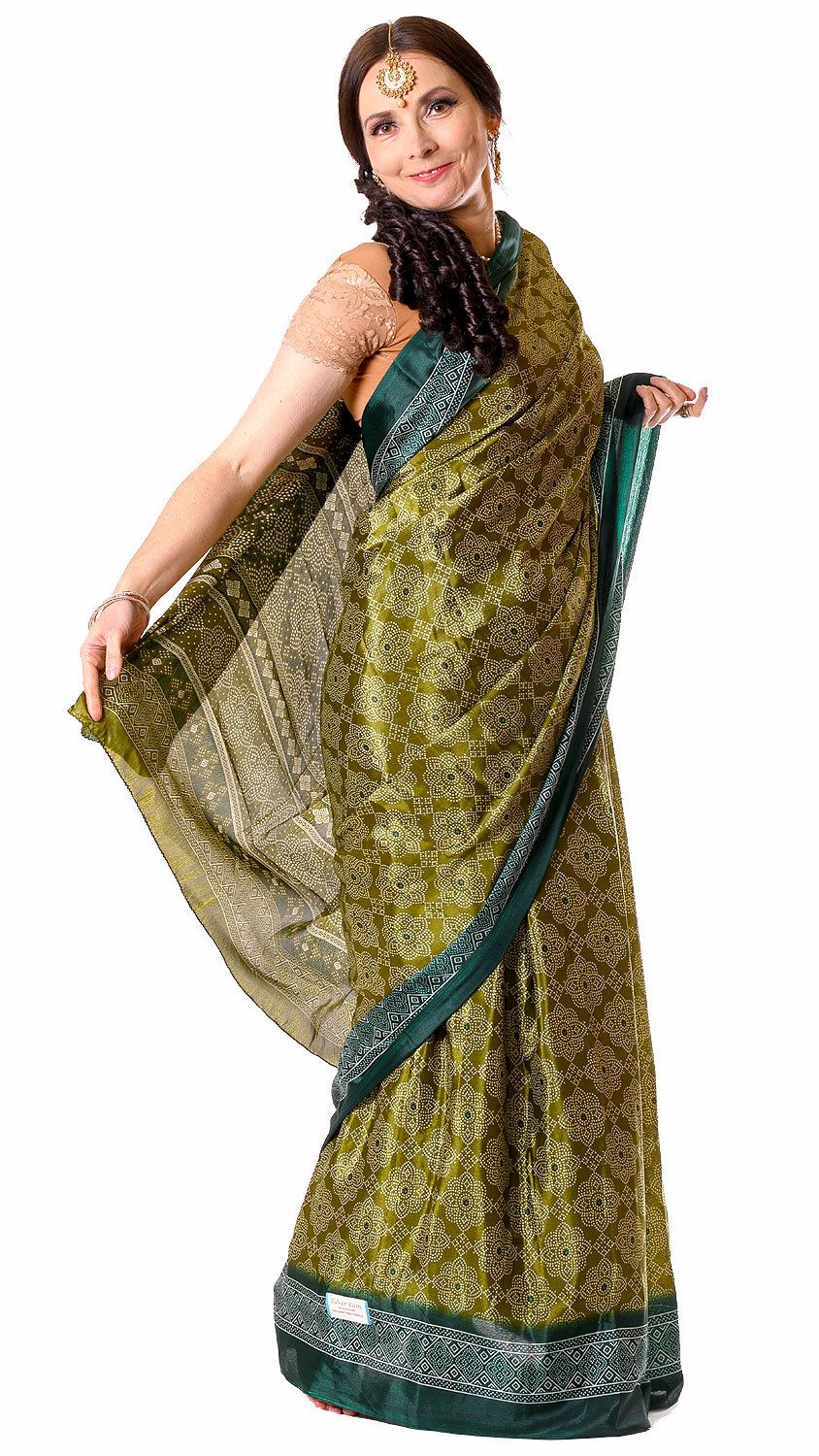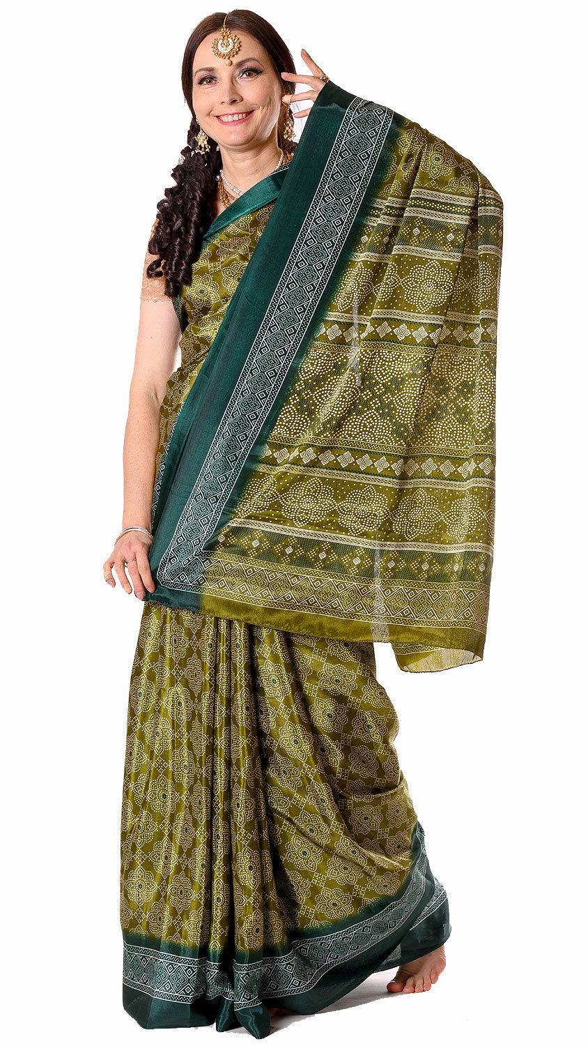 Tradiční indický oděv - sárí olivové v8613