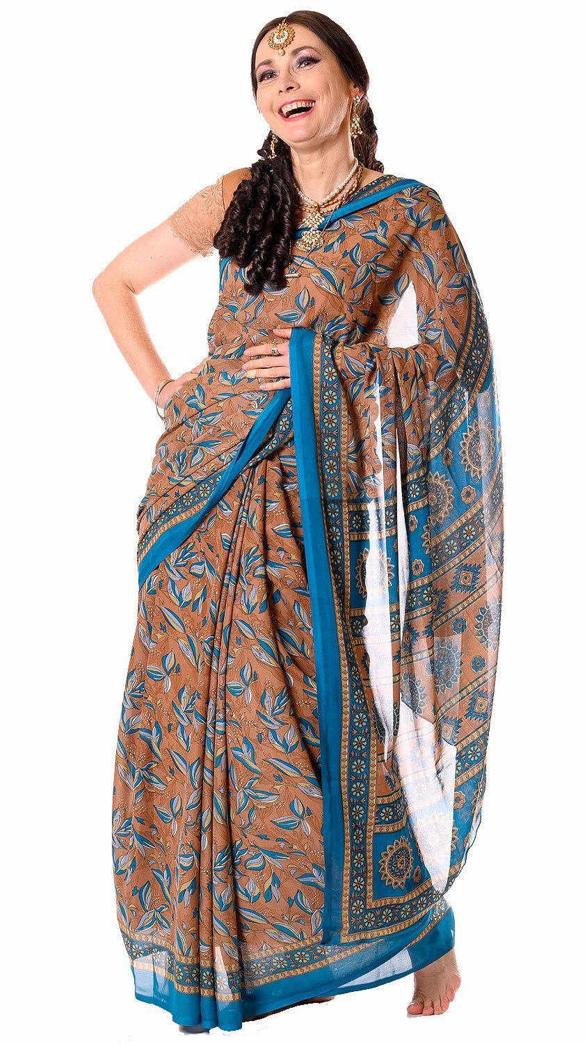 Tradiční indický oděv - sárí tyrkysové s latté v8633