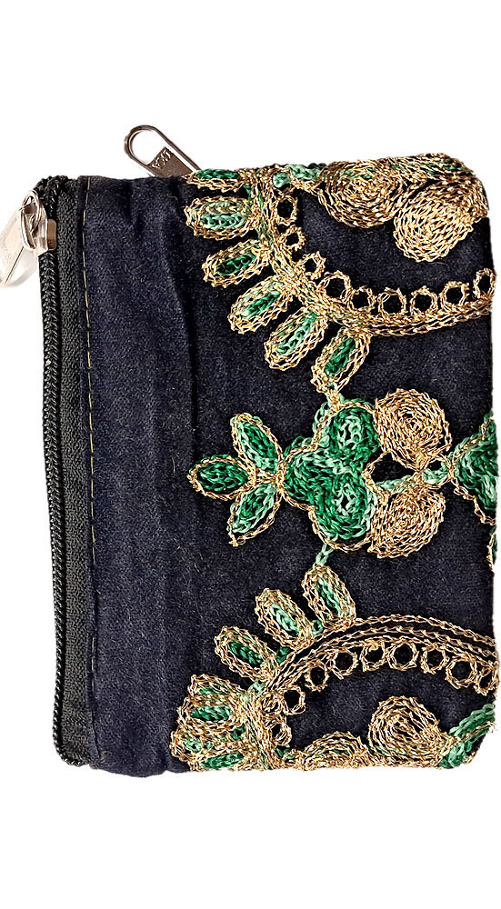 Vyšívaná peněženka na drobné a kreditky černá ta222