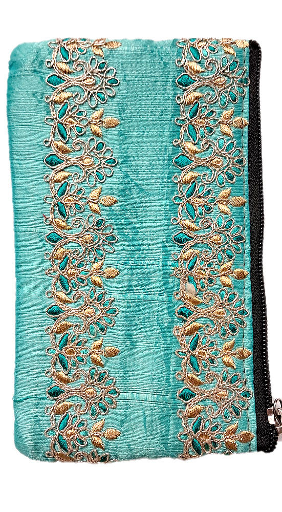 Vyšívaná peněženka na drobné a kreditky tyrkysová ta229