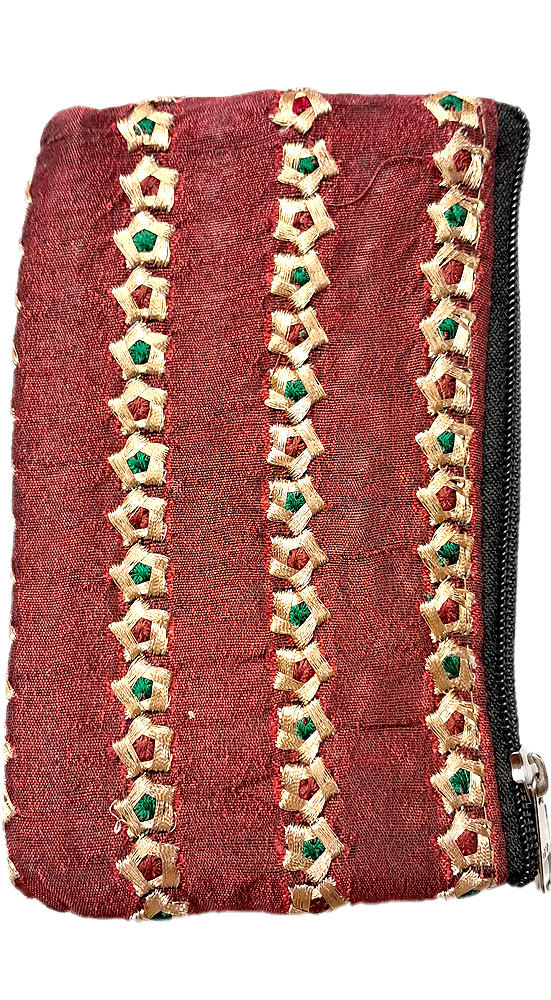 Vyšívaná peněženka na drobné a kreditky vínová ta225